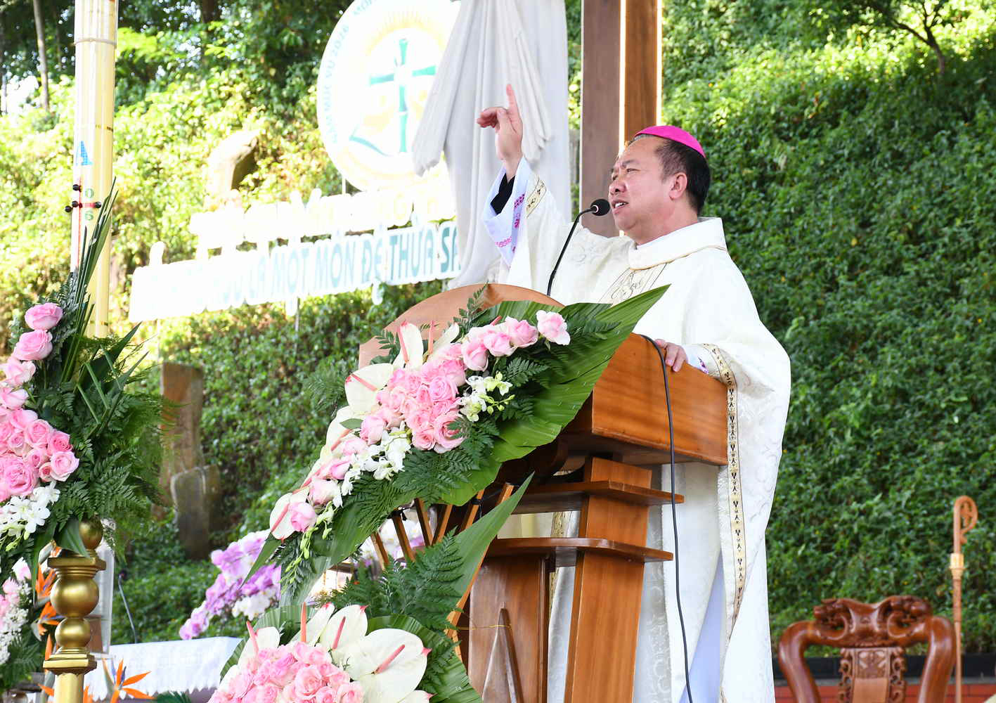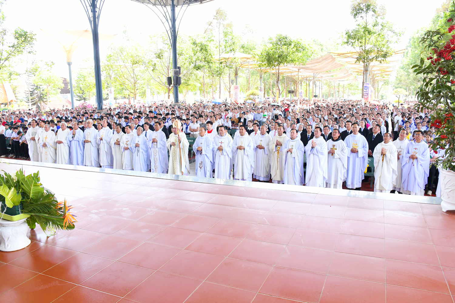 Đúng 09g00, Thánh lễ được bắt đầu. Hiện diện trong đoàn rước có Đức Giám mục Gioan Baotixita Nguyễn Huy Bắc – Giám mục Giáo phận Ban Mê Thuột, Cha Tổng Đại diện Phêrô Nguyễn Văn Thái, Cha Quản lý Giáo phận Gioan Baotixita Nguyễn Công Phi, Cha Giám đốc Trung tâm Hành hương Gioan Baotixita Phạm Văn Phong, quý Cha đồng tế, quý Tu sĩ nam nữ các Hội dòng, cùng đông đảo bà con trong và ngoài Giáo phận tham dự.