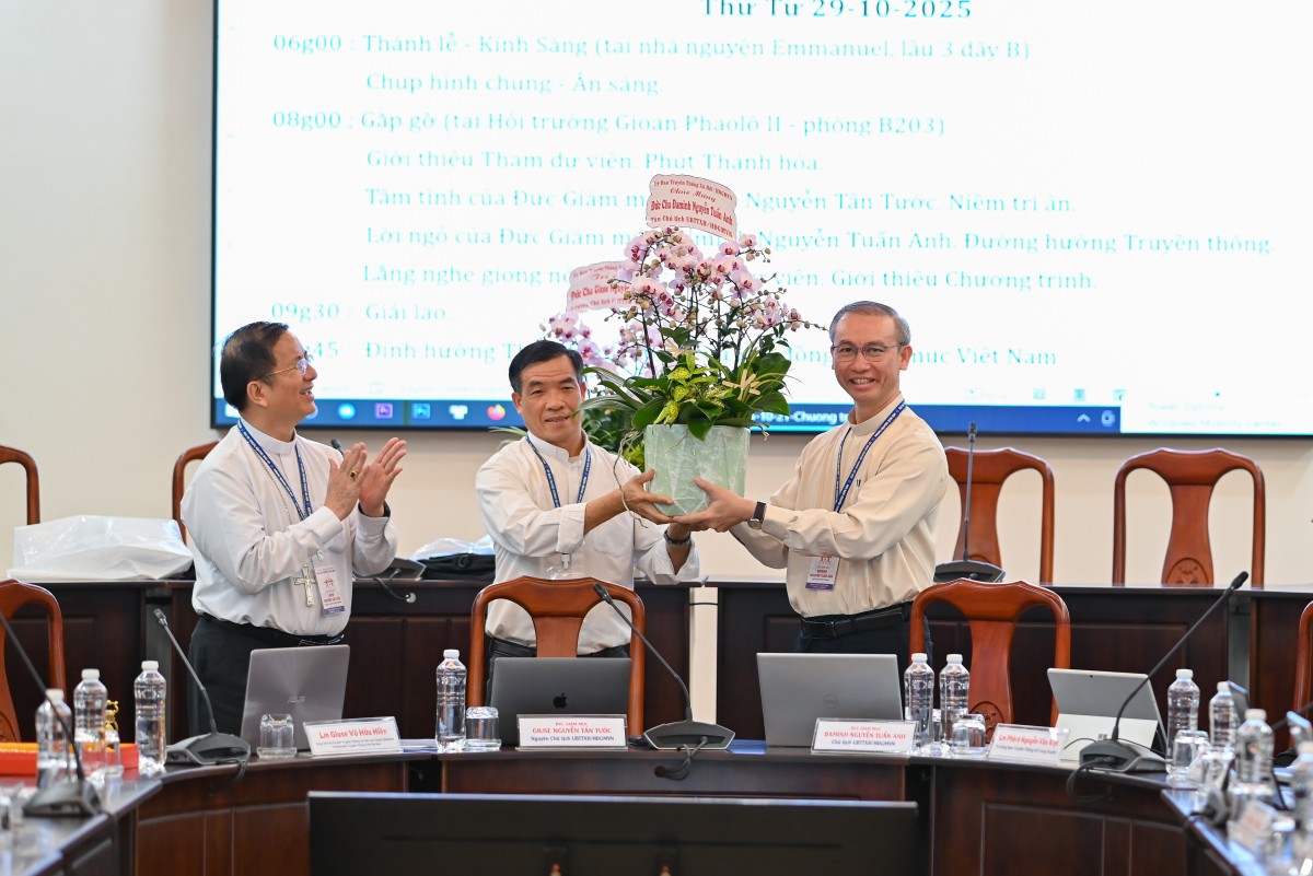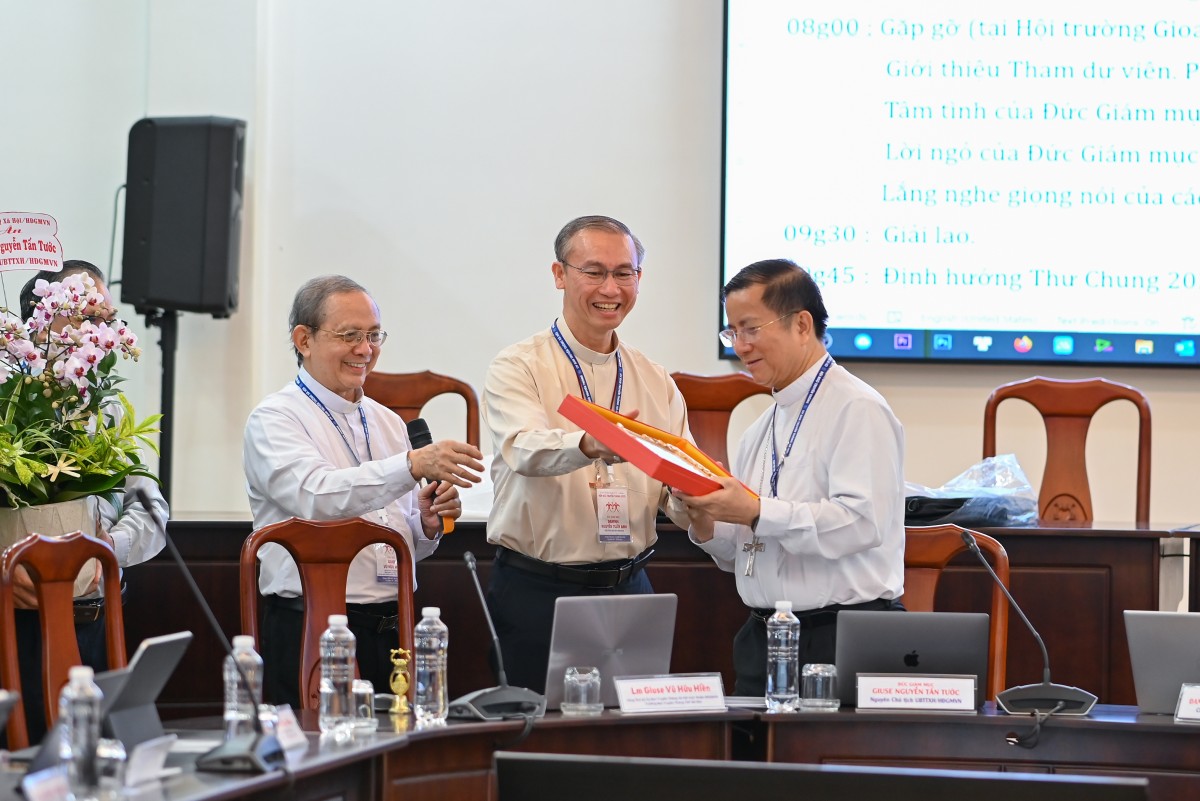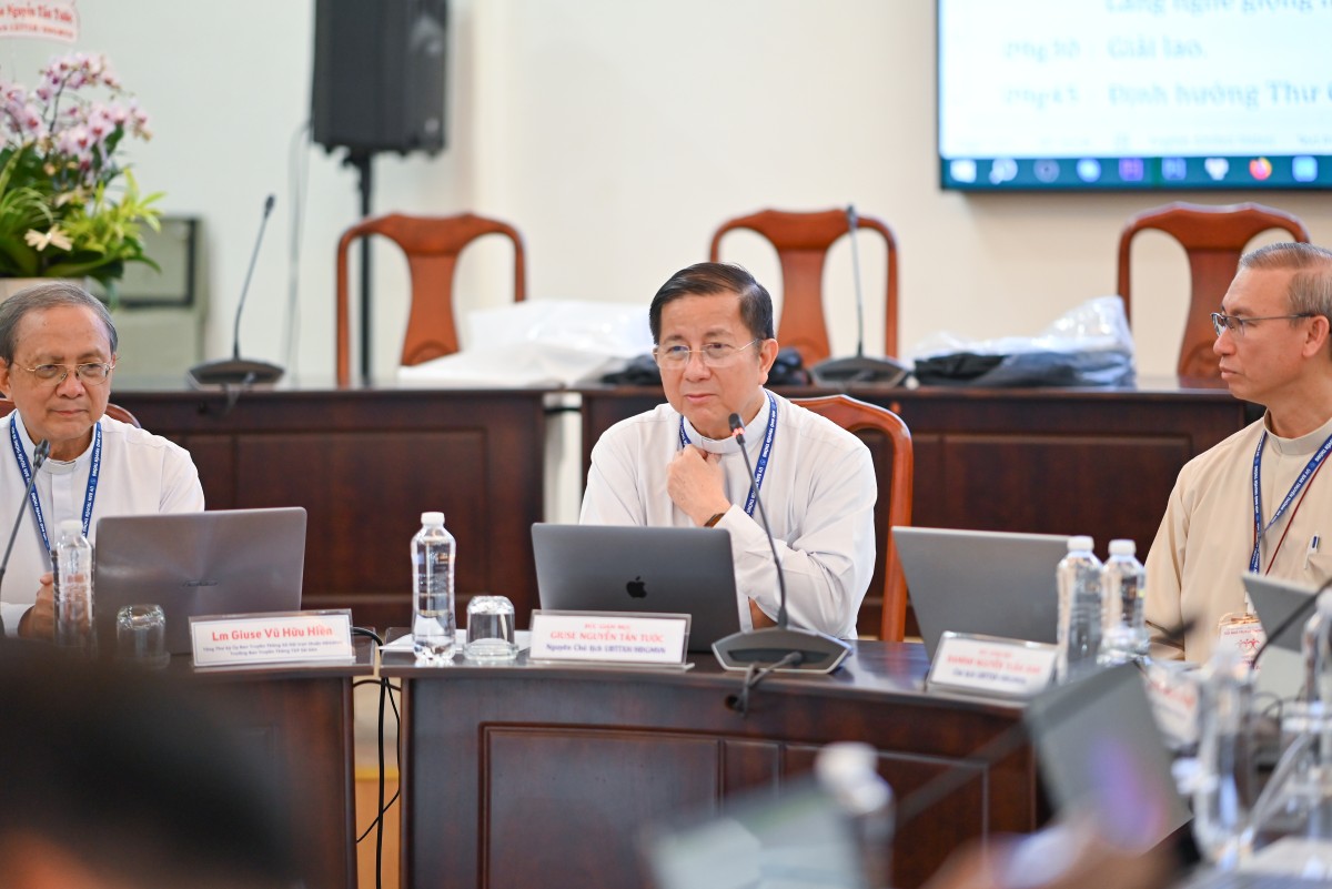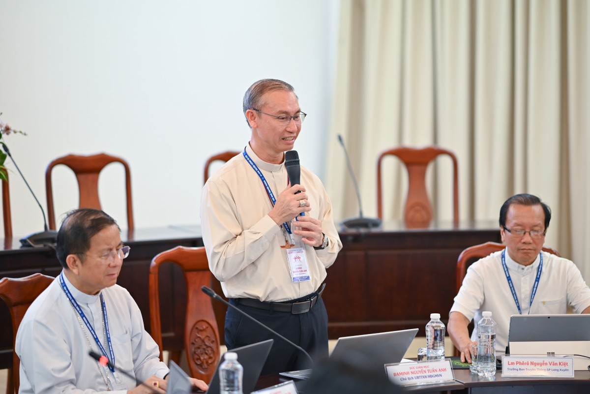 Sau khi các tham dự viên từ các giáo tỉnh giới thiệu và chia sẻ về hoạt động truyền thông tại địa phương mình, Đức cha Đaminh Nguyễn Tuấn Anh đã trình bày những thao thức mục vụ của HĐGMVN về truyền thông xã hội trong bối cảnh mới.