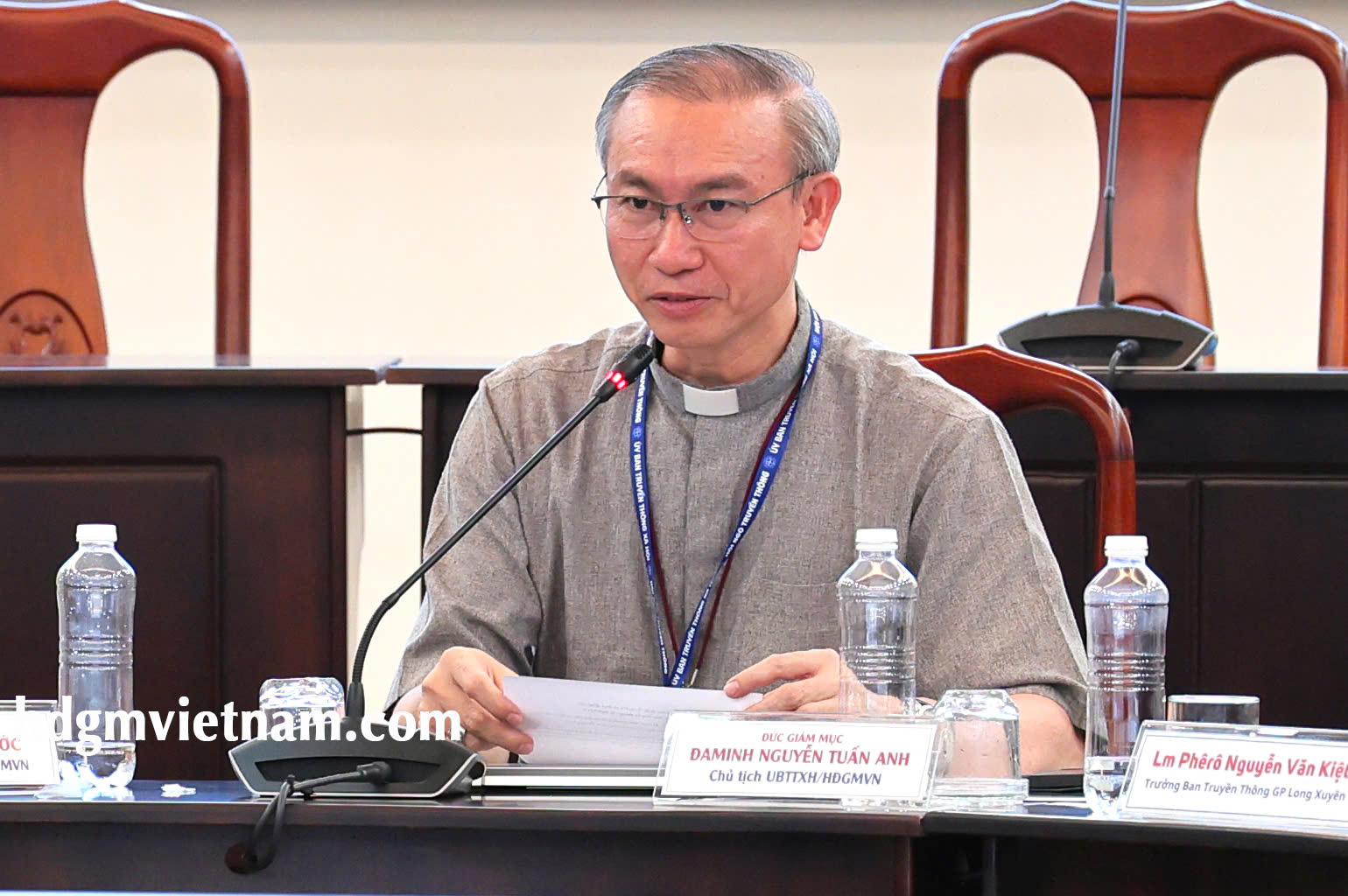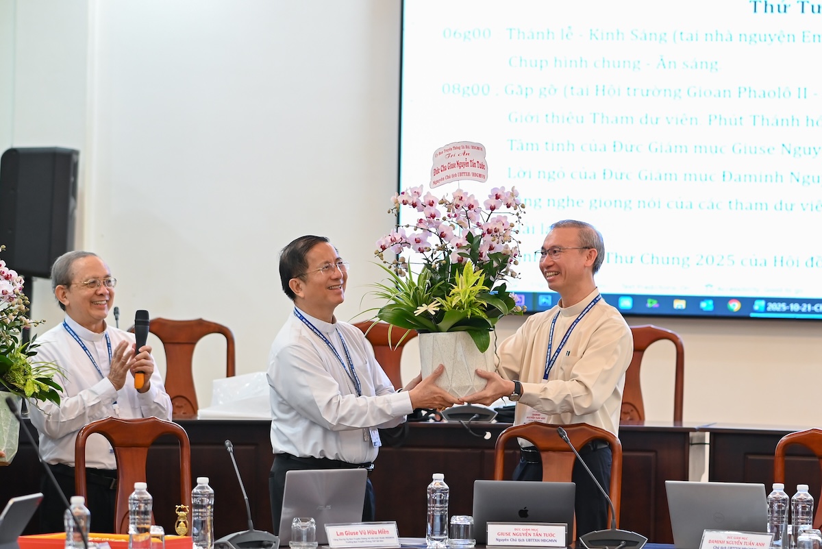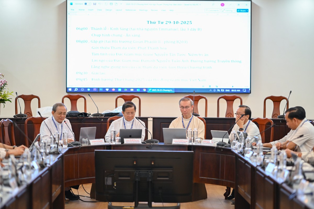 Sau khi các tham dự viên từ các giáo tỉnh giới thiệu và chia sẻ về hoạt động truyền thông tại địa phương mình, Đức cha Đaminh Nguyễn Tuấn Anh đã trình bày những thao thức mục vụ của HĐGMVN về truyền thông xã hội trong bối cảnh mới.