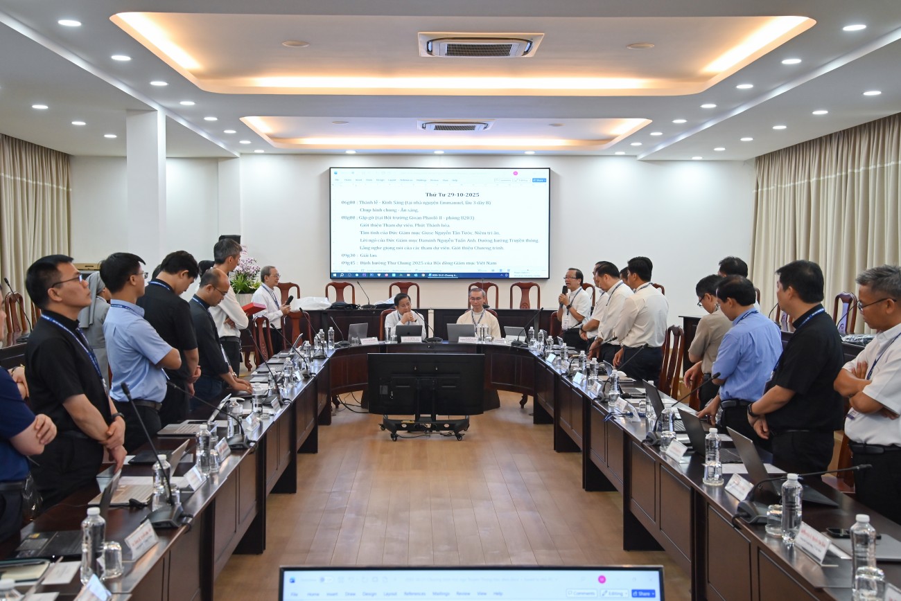 Phiên họp buổi sáng khởi sự vào lúc 8g tại Hội trường Gioan Phaolô II với những tâm tình của Đức cha Giuse Nguyễn Tấn Tước. Ngài chia sẻ những tha thiết của mình trong suốt thời gian đồng hành cùng UBTTXH và vui mừng giới thiệu vị kế nhiệm.