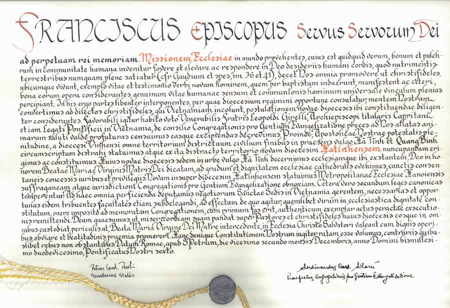 Ngày 22/12/2018, khi Đức Thánh cha Phanxicô ban Tông sắc thành lập Giáo phận Hà Tĩnh tách từ Giáo phận Vinh, niềm vui ấy đã vỡ òa trong lòng mọi thành phần Dân Chúa. Và ngày 11/02/2019, Thánh lễ tạ ơn công bố quyết định thành lập Giáo phận cùng với việc khai mạc sứ vụ của Đức cha Phaolô Nguyễn Thái Hợp đã trở thành một dấu son không thể phai mờ trong lịch sử Giáo phận. Một trang sử mới chính thức được mở ra, trang sử của truyền giáo, hiệp thông và dấn thân.