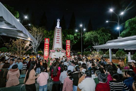 Đông đảo tín hữu quy tụ bên Linh đài Đức Mẹ