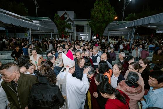 Kết thúc Thánh lễ, Đức Cha còn nán lại khá lâu tại linh đài để đặt tay chúc lành riêng trên tng bnh nhân, ân cần thăm hỏi và trao gửi những lời động viên đầy tình mục tử. Hình ảnh vị chủ chăn cúi mình chúc lành, nắm tay từng người đau yếu đã để lại nhiều xúc động cho cộng đoàn hiện diện, như dấu chỉ sống động của sự quan tâm và lòng thương xót của Giáo Hội dành cho những ai đang mang trong mình bệnh tật và thử thách.