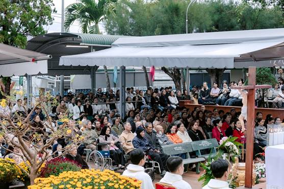 Giữa tiết trời se lạnh những ngày cuối năm âm lịch, đông đảo quý ông bà anh chị em trong và ngoài giáo xứ đã quy tụ về Linh đài Đức Mẹ Lộ Đức để tham dự Thánh lễ. Đặc biệt, sự hiện diện của nhiều bệnh nhân đã làm cho bầu khí phụng vụ thêm phần xúc động và ý nghĩa – tất cả cùng về bên Mẹ để tìm kiếm sự nâng đỡ, ủi an và ơn chữa lành.