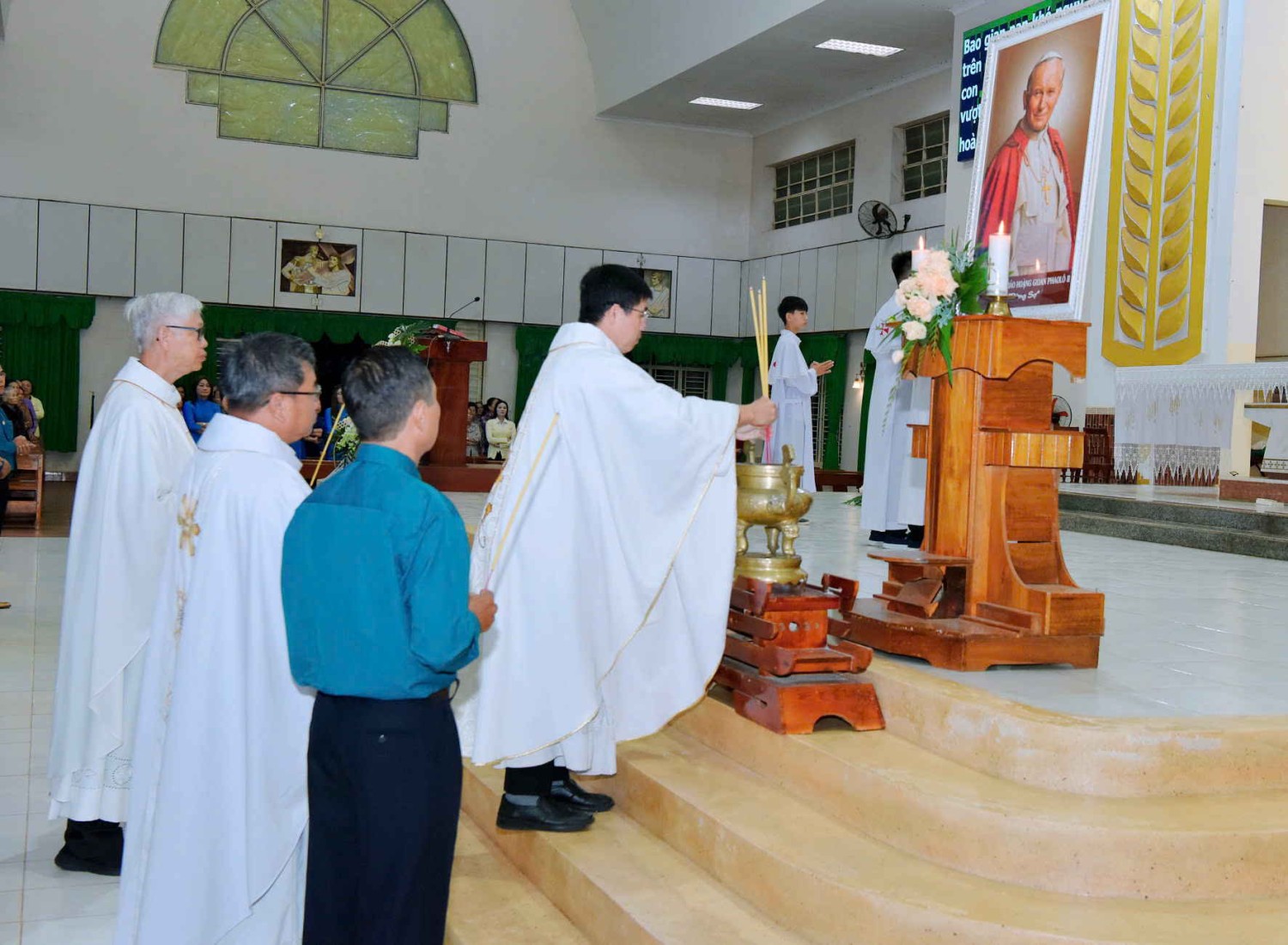 Thánh lễ mừng Bổn mạng được cử hành cách long trọng trong ngôi Thánh đường thân yêu của Giáo xứ lúc 04 giờ 45, do Cha phó Anrê Lê Lã Ngọc Tuấn chủ tế. Cùng đồng tế có Cha Quản xứ Giuse Vũ Ngọc Toàn và Cha quê hương GB Hồ Quang Hưởng.