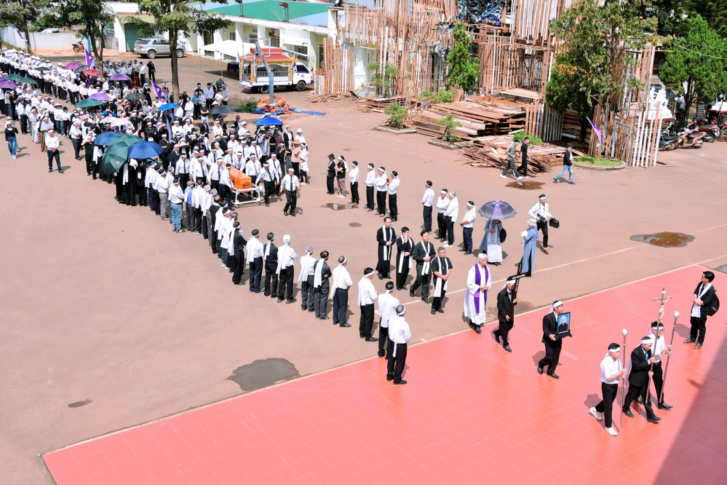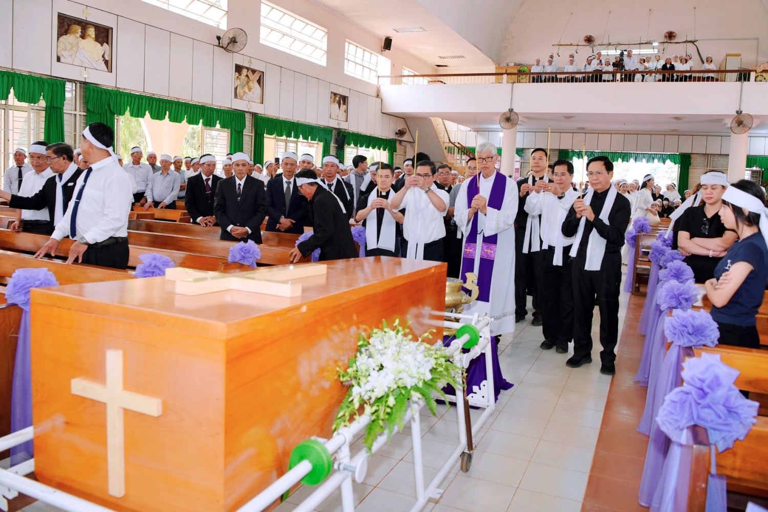 Cha ơi, lần này Giáo xứ đón Cha về sao thật lạ: đông hơn trước, nhưng không ồn ào náo nhiệt. Những chiếc áo sặc sỡ trước kia, chúng con xếp lại; thay vào đó là vành khăn tang trên đầu. Chúng con đâu phải thân nhân ruột thịt của Cha, nhưng những gì Cha đã ghi dấu nơi Giáo xứ Vinh An, chúng con có đủ lý do để thể hiện tấm lòng hiếu thảo với Cha.
