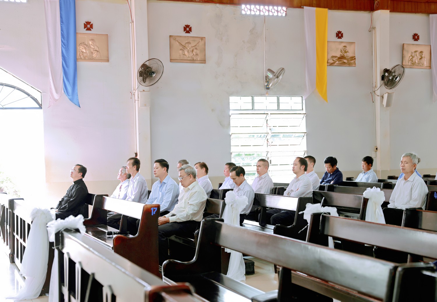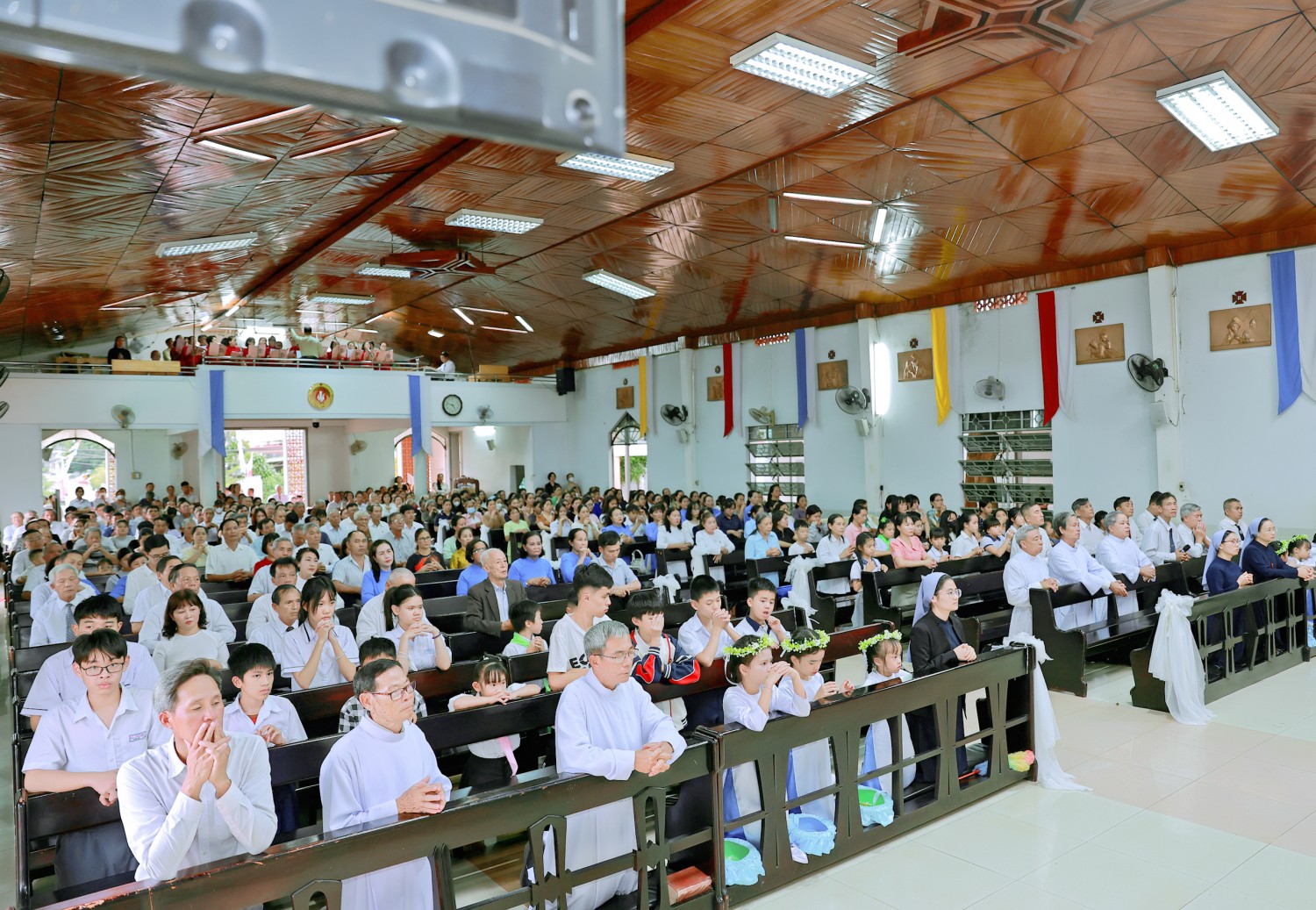 Từ sáng sớm, trong không gian linh thiêng của Ngôi Giáo đường nhỏ, các Hội đoàn đã lần lượt tiến lên trước Thánh Thể Chúa trong sự trang nghiêm và thờ lạy sâu lắng: Giáo lý viên – Thiếu nhi – Giới trẻ; tiếp đến là Giới Hiền mẫu, Legio Mariae, Hội cao niên, Giới Gia trưởng, Quý Soeurs và Quý chức Hội đồng Giáo xứ. Mỗi giờ chầu như một nén hương thiêng tỏa lên trước ngai tòa Chúa, nối kết cộng đoàn vào dòng chảy phụng vụ của toàn Giáo phận.