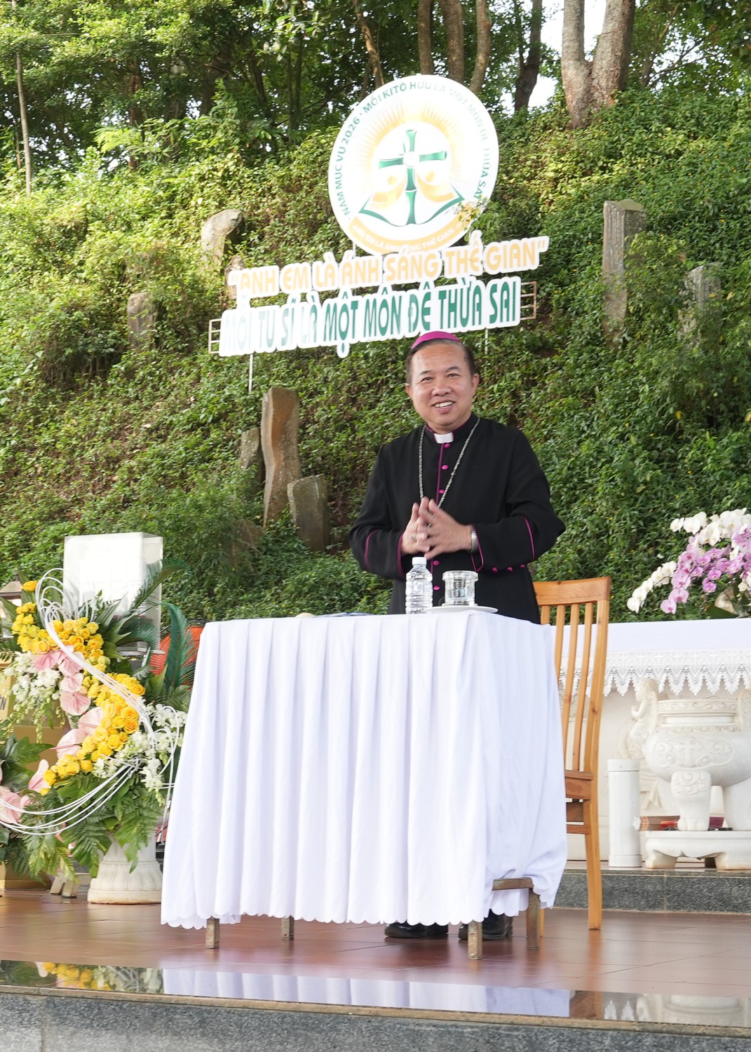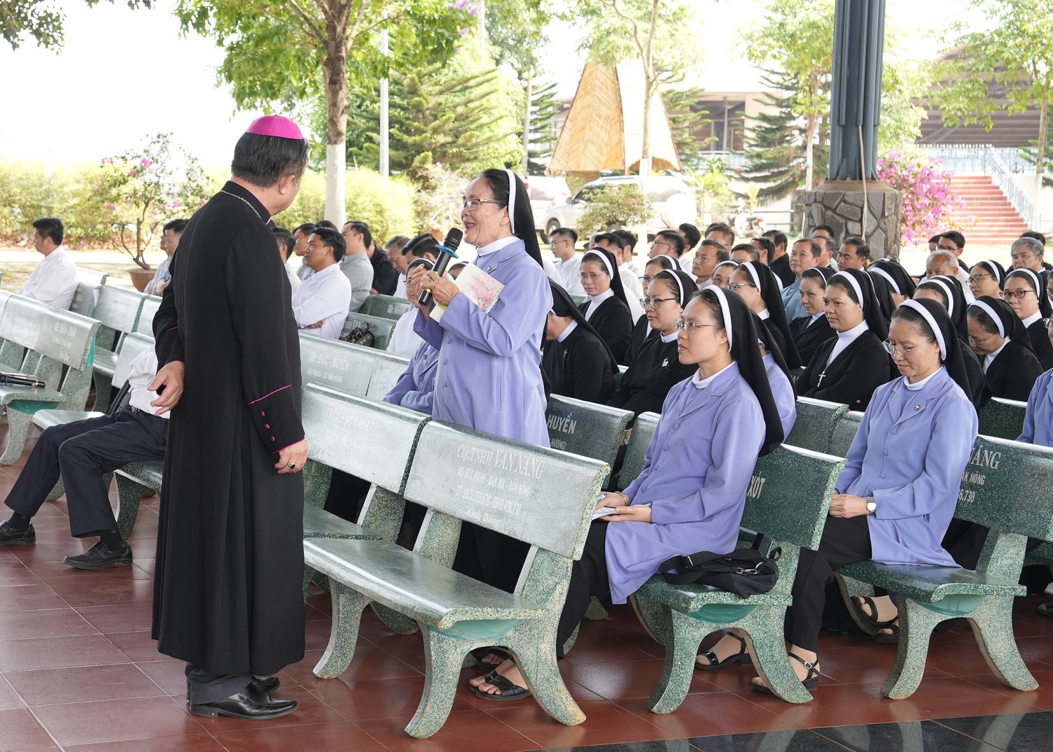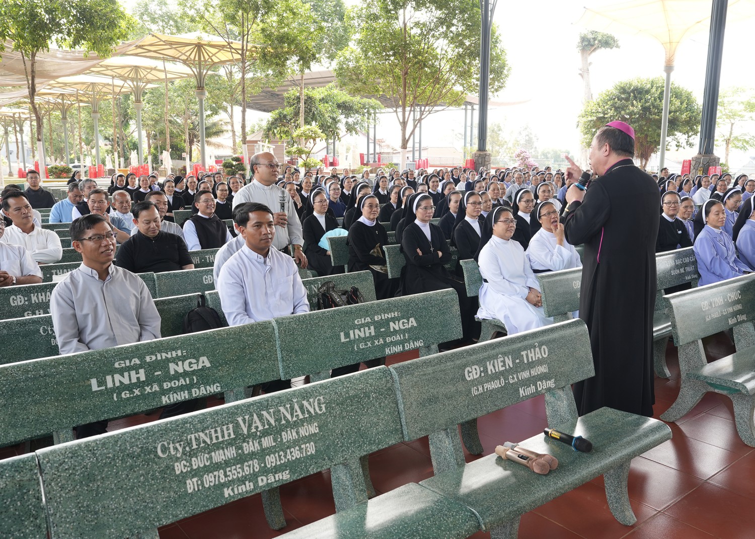 Tiếp sau phần khai mạc là lời chia sẻ của Đức Giám Mục Gioan Baotixita Nguyễn Huy Bắc, Giám mục Giáo phận Ban Mê Thuột về đời sống của tu sỹ qua 3 chiều kích: Thần học – Thực hiện – Thách đố.