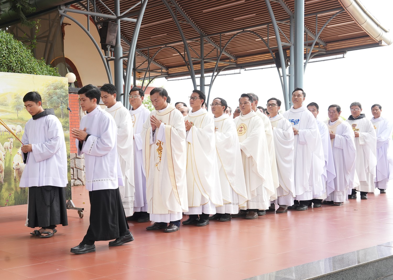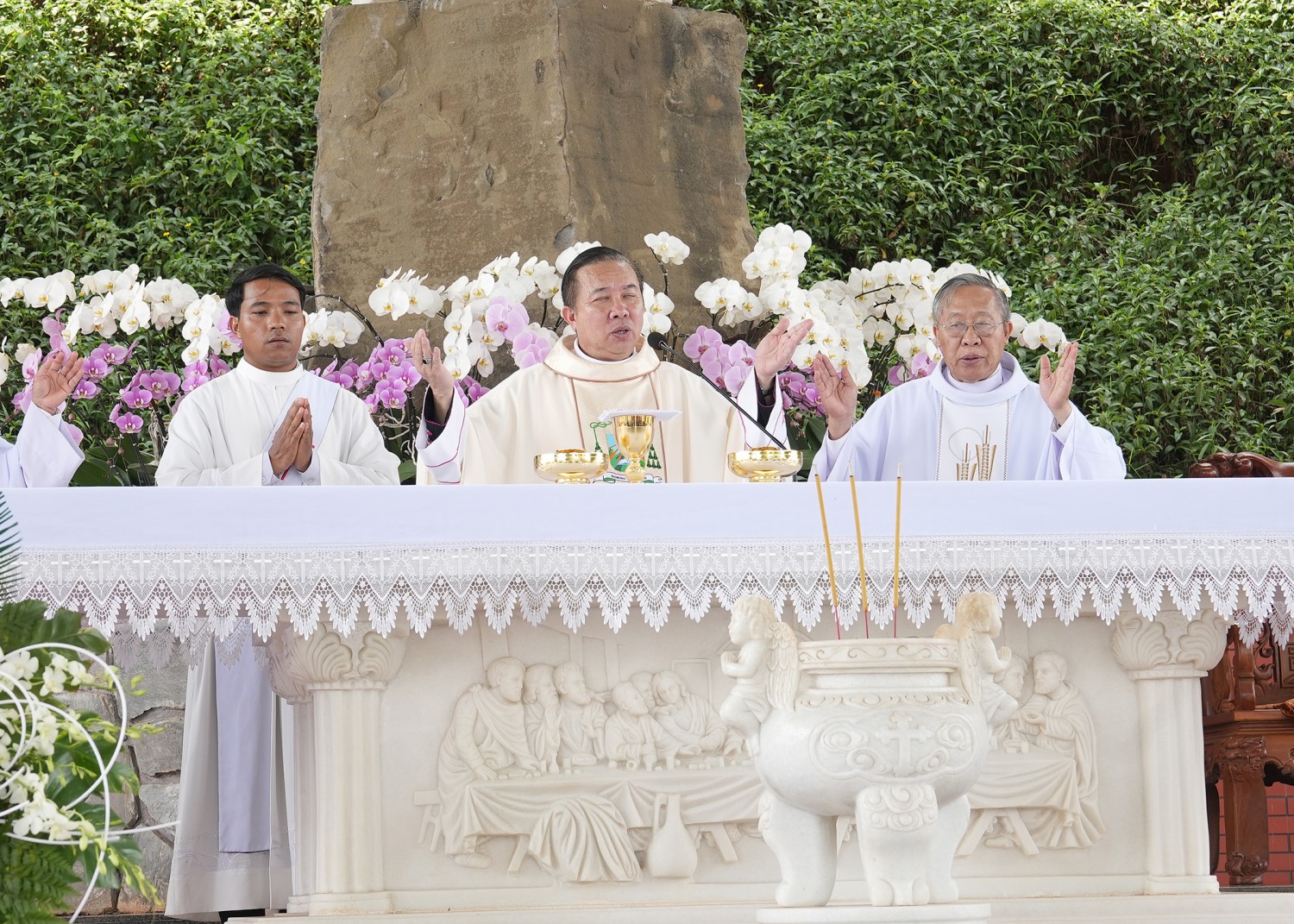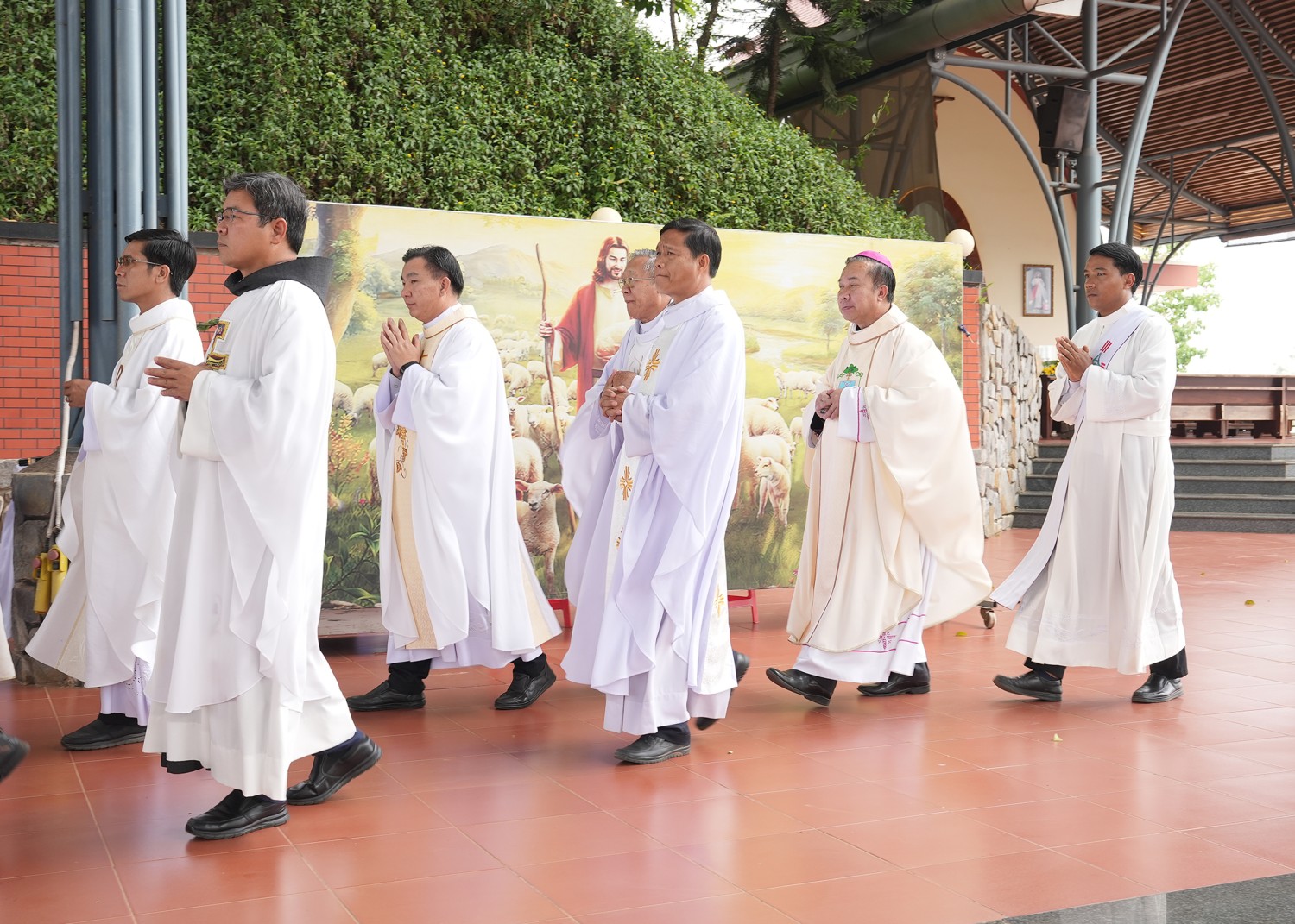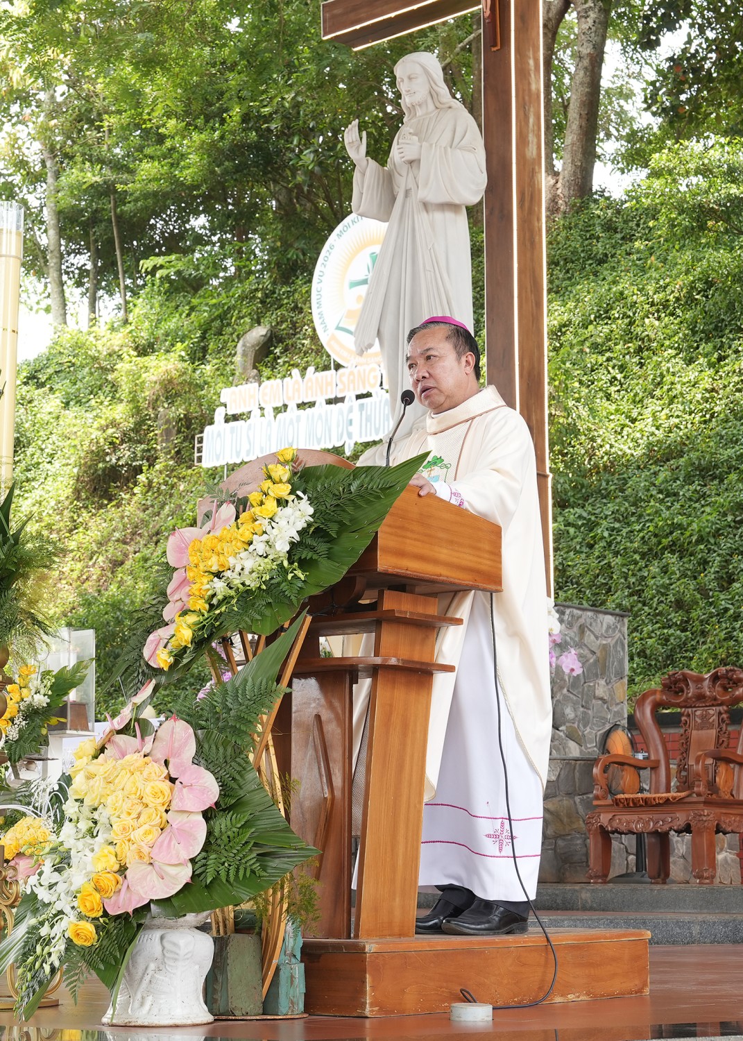 Thánh lễ long trọng cử hành vào lúc 10g30, do Đức Giám Mục Gioan Baotixita chủ tế; Cha Giám đốc Đồi, quý Cha đồng tế. Hiện diện tham dự Thánh lễ có các cộng đoàn trong Giáo hạt Đăk Mil và Gia Nghĩa, cùng đông đảo quý tu sỹ trong 2 Giáo hạt.