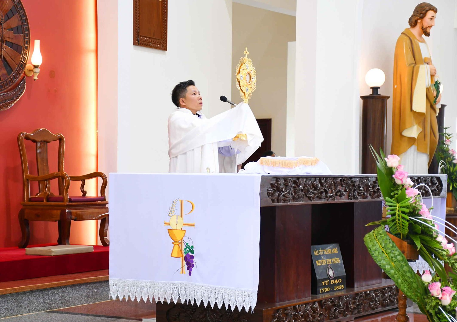 Sau khi hoàn tất các nghi thức, Cha tân Quản nhiệm chủ sự giờ Chầu Thánh Thể.
