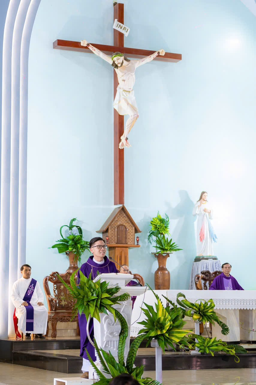 Trong bài giảng Lễ, cha Giuse Nguyễn Hoàng Sơn đã dùng hình ảnh cây nho để diễn tả rằng, mỗi Giáo lý hãy liên kết mật thiết với Chúa như cành cây liên kết với thân cây, vừa để giữ lấy sự sống và sau đó cho ra những hoa quả ngọt ngào. Là Giáo lý viên, mỗi người chúng ta phải biết gắn kết với Chúa Giêsu một cách bền chặt, để qua đó Ngài sẽ tiếp thêm sức mạnh và nhựa sống cho chúng ta trên hành trình loan báo lời Chúa.