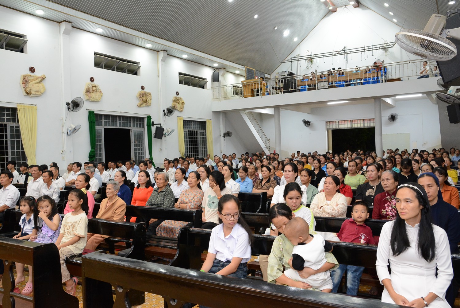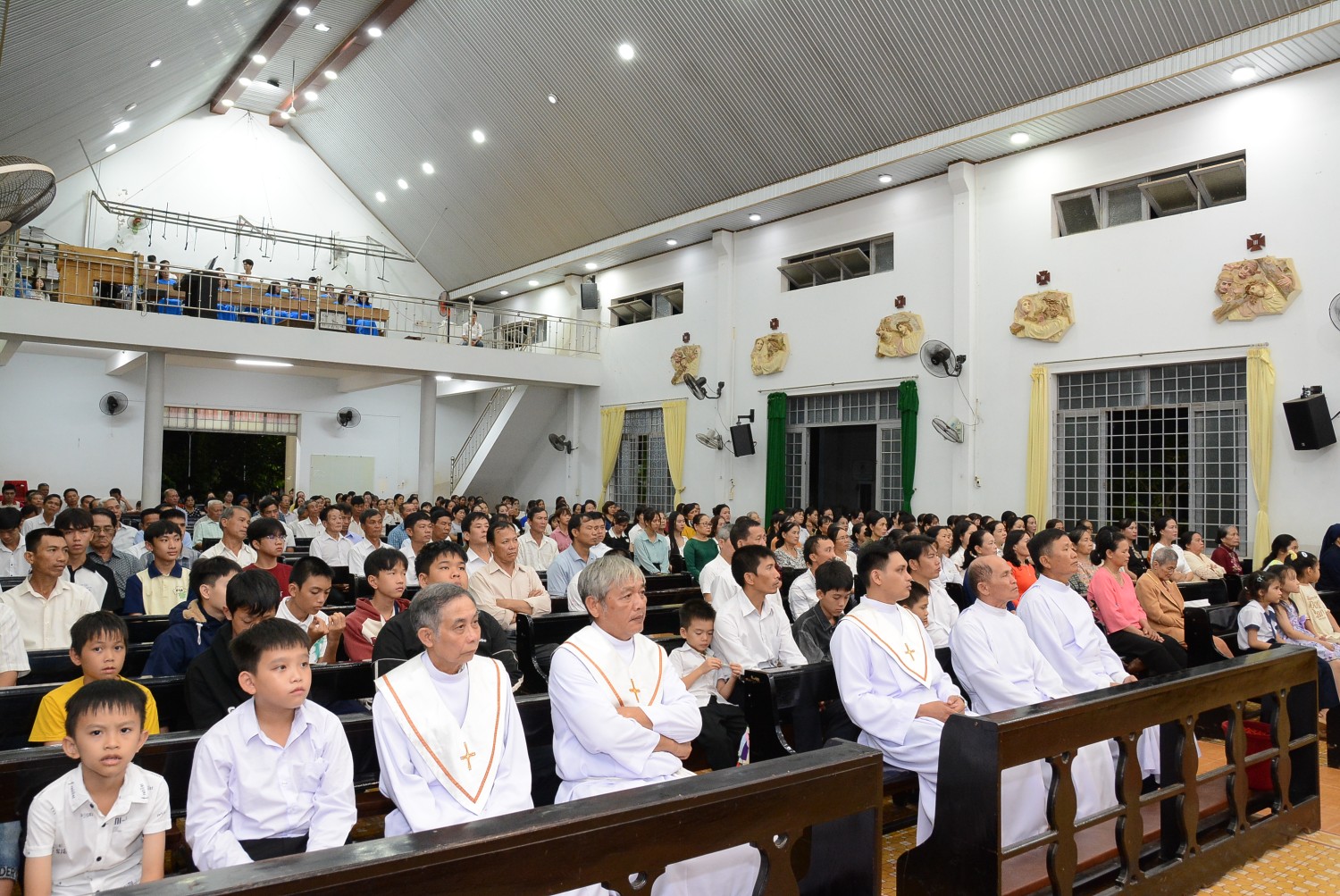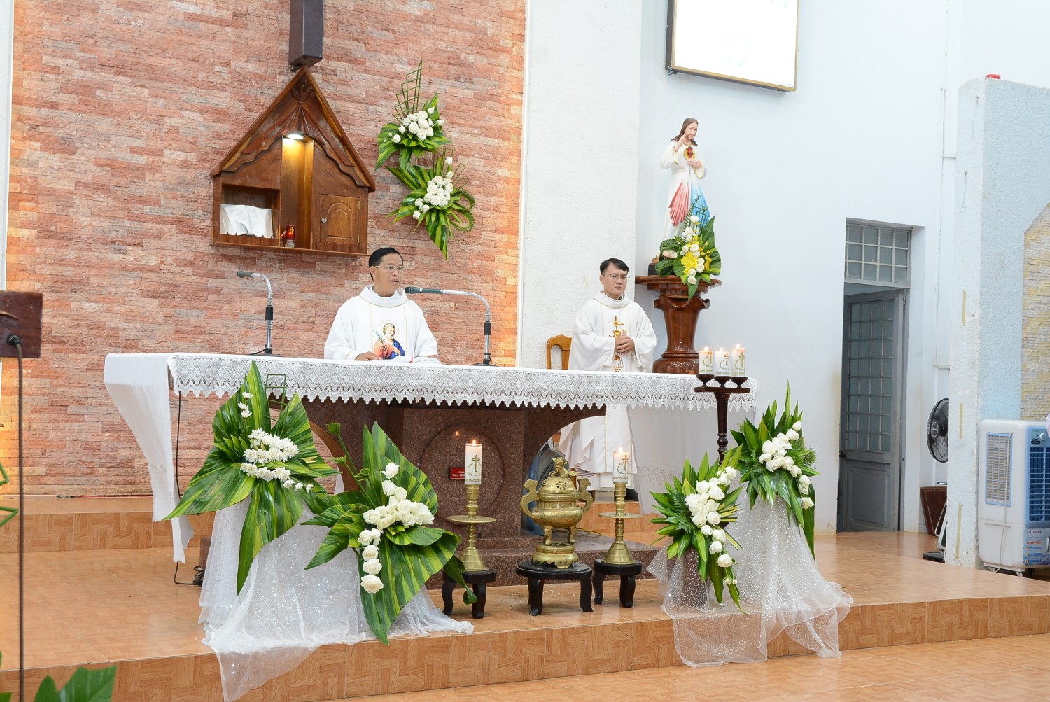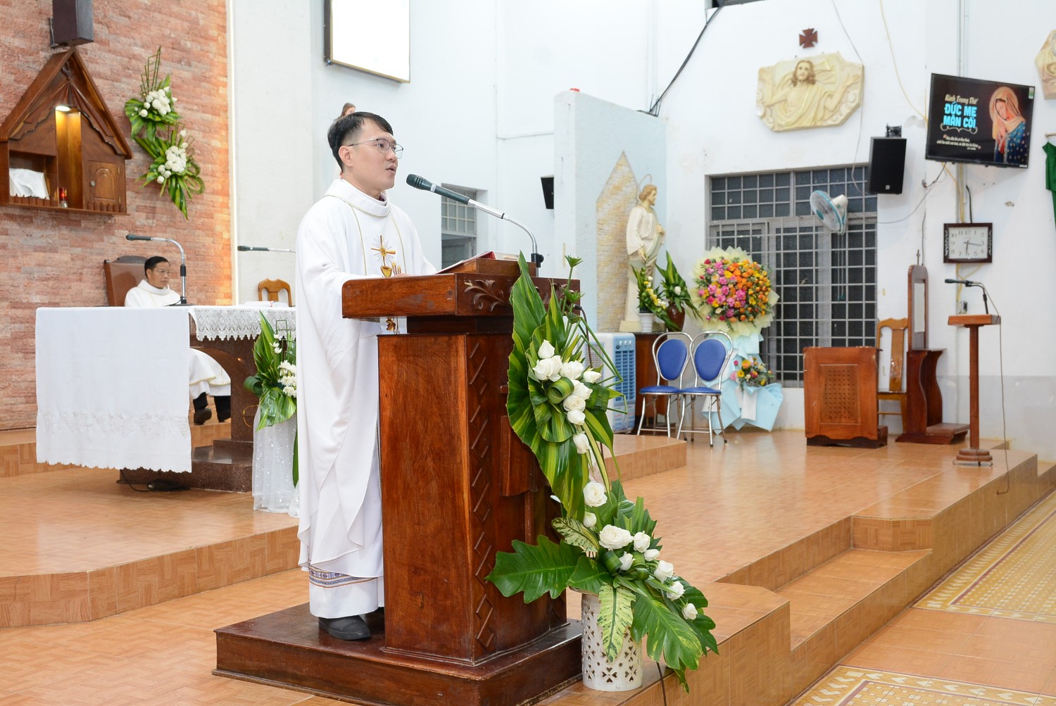 Mở đầu Thánh lễ, Cha quản xứ Phanxicô Xaviê Nguyễn Thanh Phong, O.P., chia sẻ: “Hôm nay chúng ta quy tụ nơi đây để cùng nhau ca tụng Mẹ, khai mạc Tháng Mân Côi. Xin Chúa, qua lời chuyển cầu và sự hướng dẫn của Mẹ, dẫn đưa chúng ta đến gần Chúa hơn. Mẹ luôn nhắc nhở chúng ta: ‘Người bảo gì, anh em cứ làm theo.’ Khai mạc Tháng Mân Côi cũng là dịp để mỗi gia đình mở rộng cửa, đón Mẹ về, cùng cầu nguyện, để niềm vui của Chúa được lan tỏa.”