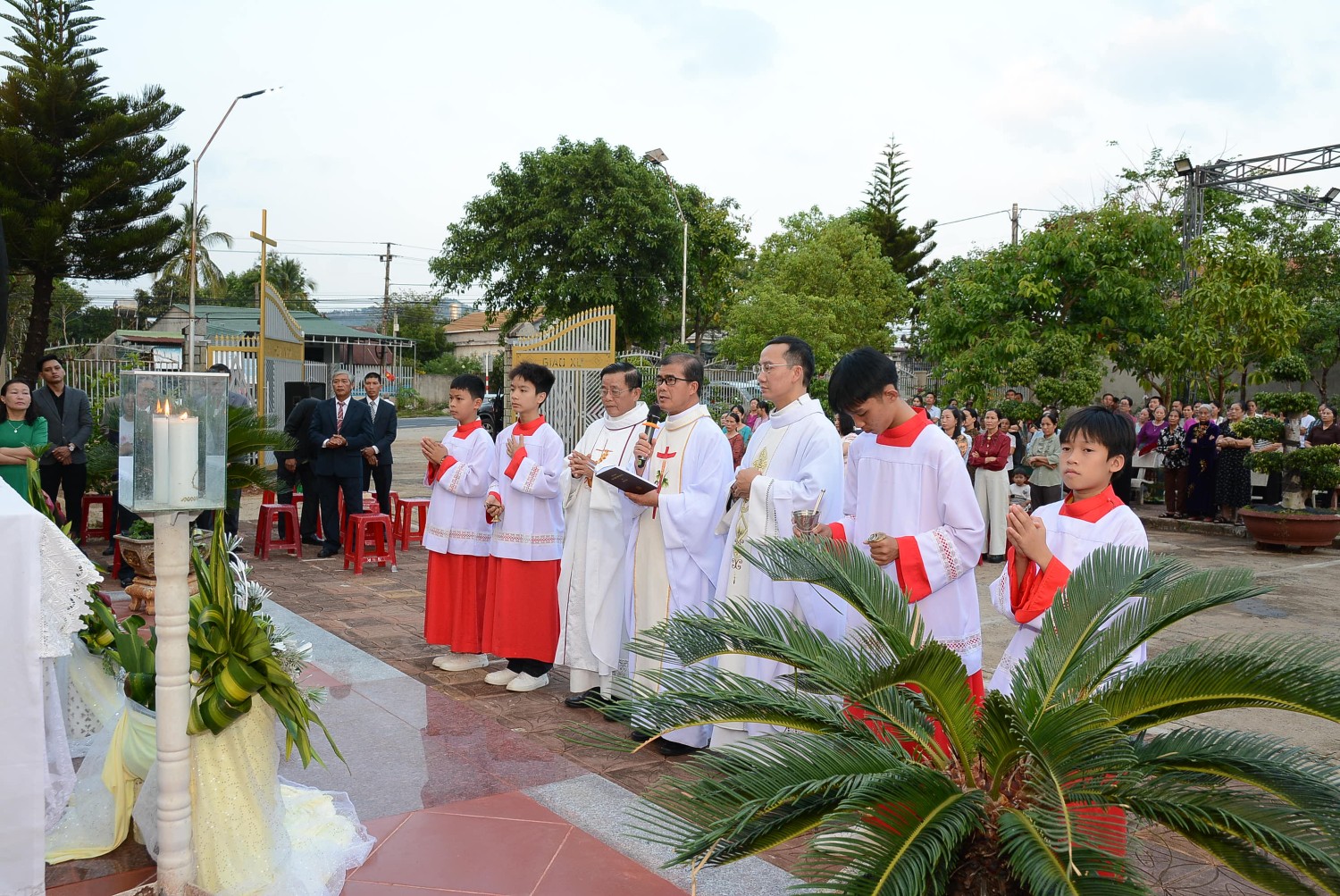 Giáo xứ Hòa Nam lế Thánh Giuse và làm phép tượng đài.