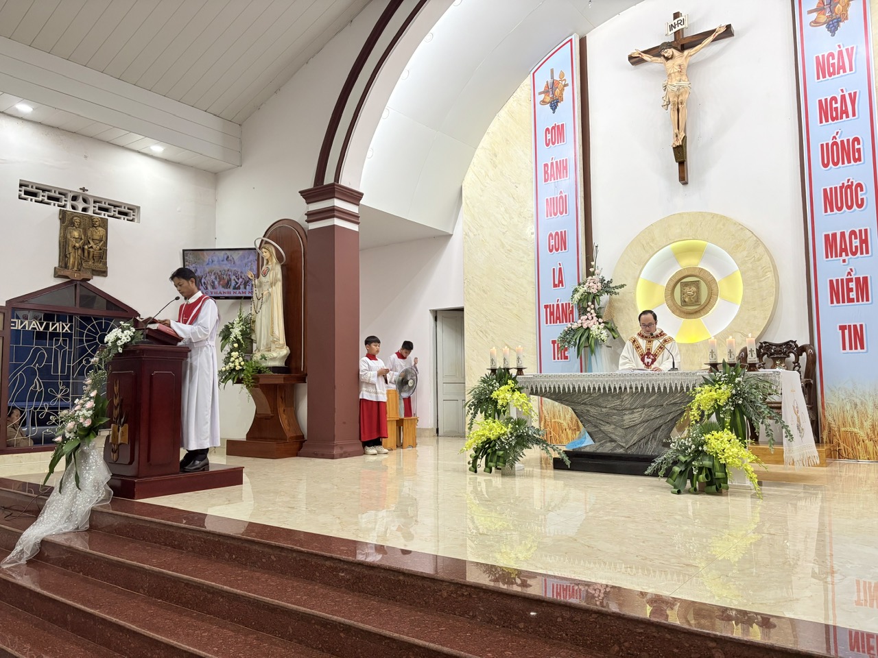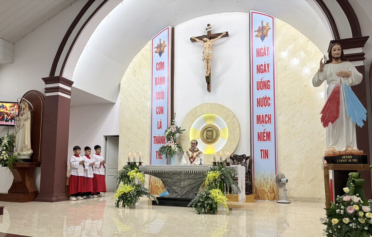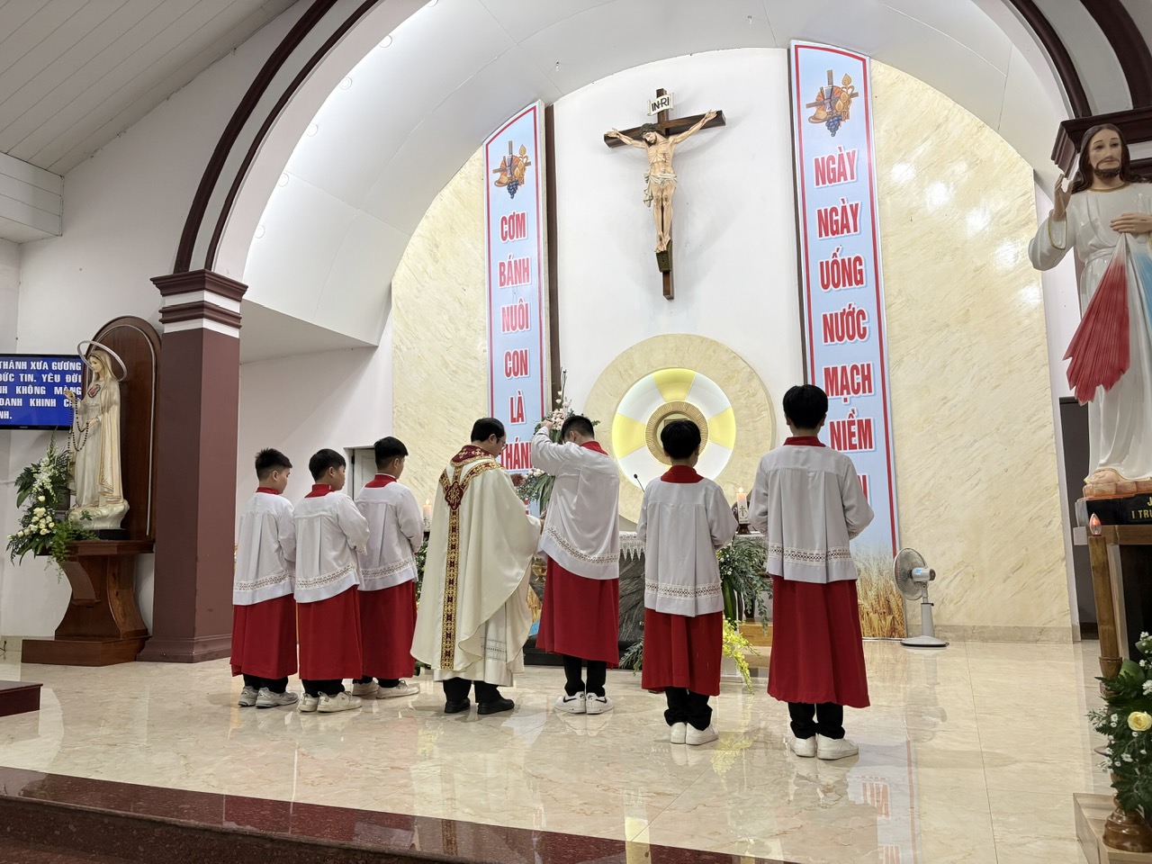 Thánh lễ do Cha Quản xứ Tôma Aquinô chủ sự, bắt đầu lúc 05g00, với sự tham dự đông đảo của cộng đoàn dân Chúa trong giáo xứ.