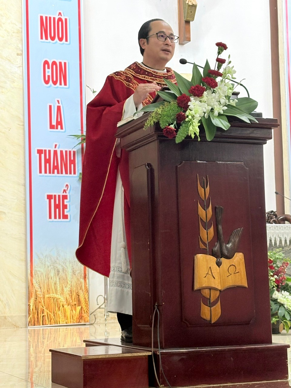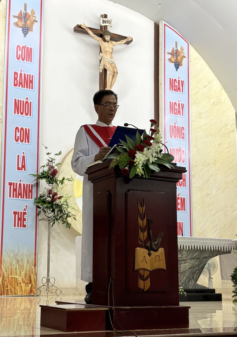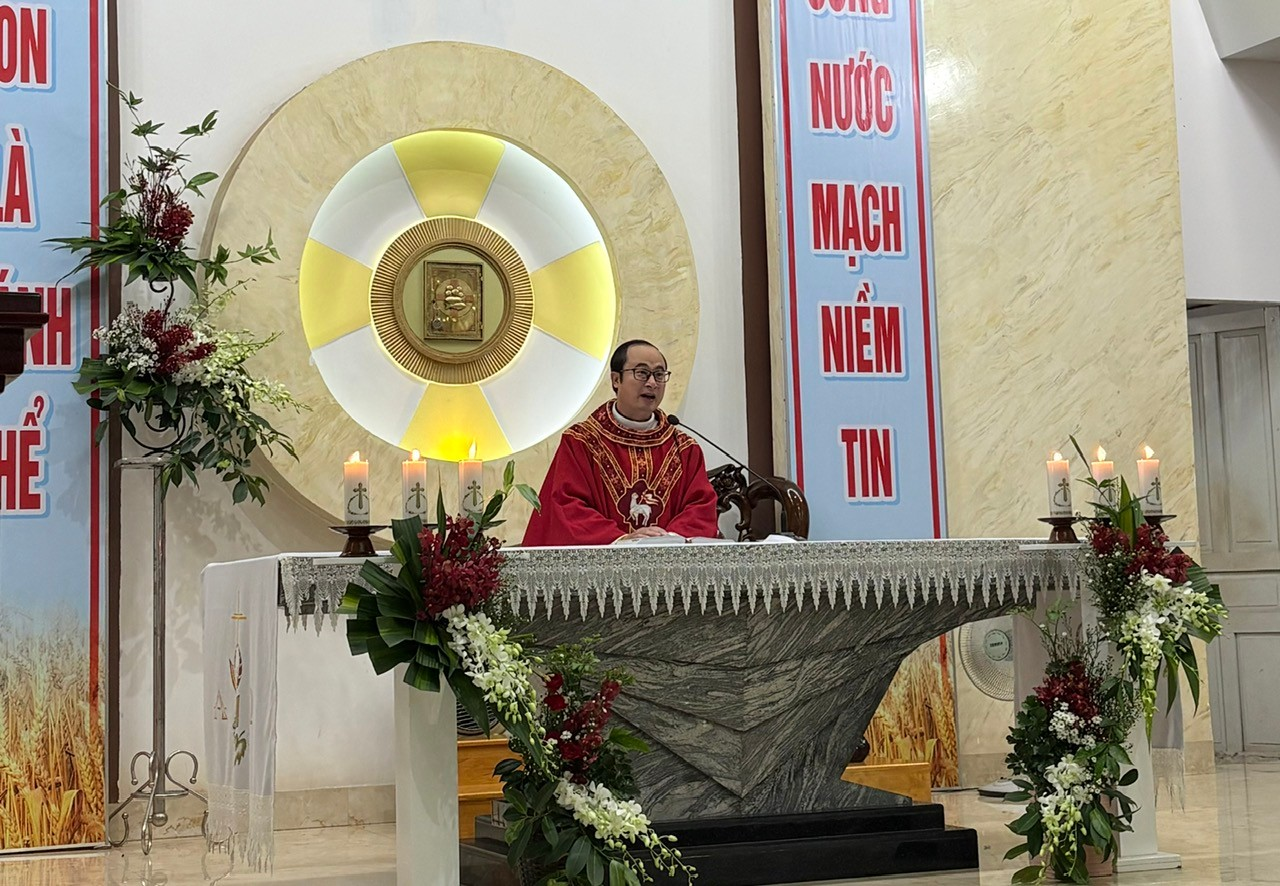 Mở đầu Thánh lễ, cha quản xứ Tôma Aquinô mời gọi cộng đoàn tưởng nhớ các Thánh Tử Đạo, những chứng nhân kiên trung và anh dũng của đức tin, đồng thời khích lệ mọi người noi gương các Ngài để sống chứng tá giữa đời thường.