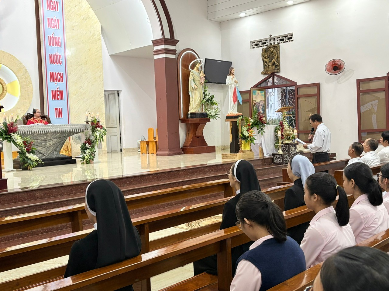 Trong phần chia sẻ Lời Chúa, cha nhắc lại sứ điệp Ngày Thế Giới Người Nghèo, trong đó Đức Giáo Hoàng gọi không nhận biết Thiên Chúa là hình thức nghèo khổ trầm trọng nhất. Cha mời gọi cộng đoàn giúp nhau vượt qua sự nghèo khổ tinh thần ấy bằng đời sống yêu thương và chứng tá Tin Mừng.