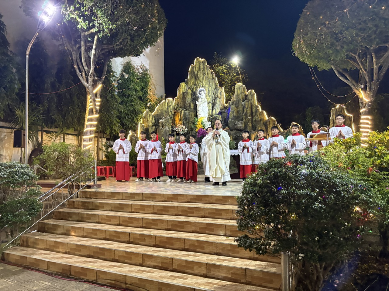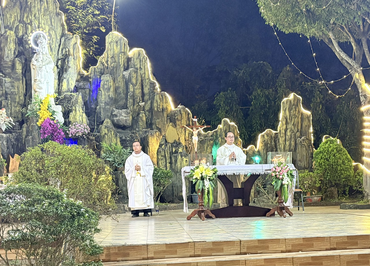 Thánh lễ do Cha Quản xứ Tôma Aquinô chủ tế, cùng đồng tế có Cha Phó Antôn, với sự hiện diện đông đảo và sốt sắng của cộng đoàn. Trong tâm tình hiệp dâng, mỗi người dâng lên Chúa những lo toan của năm cũ, những ước mong của năm mới và khát vọng sống một đời sống đức tin trưởng thành, yêu thương và hiệp nhất hơn trong đại gia đình Giáo xứ.