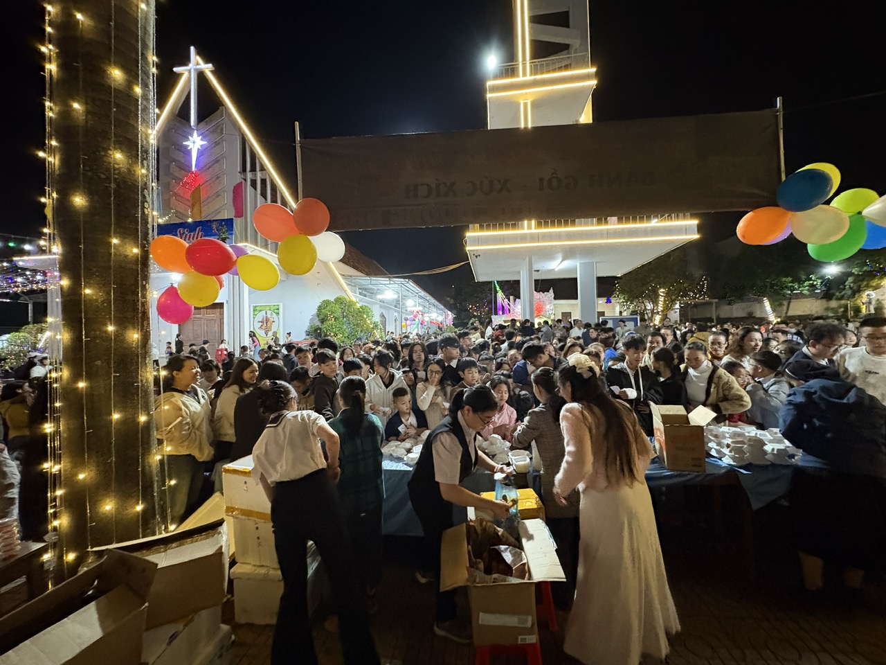 Sau Thánh lễ, niềm vui được nối dài trong bầu khí rộn ràng của Lễ hội ẩm thực Giáo xứ. Những gian hàng đơn sơ nhưng chan chứa nghĩa tình, là kết quả của tinh thần hiệp nhất, cộng tác và phục vụ của các hội đoàn, gia đình trong Giáo xứ. Hình ảnh mọi người quây quần bên nhau là dấu chỉ sống động của một Giáo Hội hiệp hành và yêu thương.