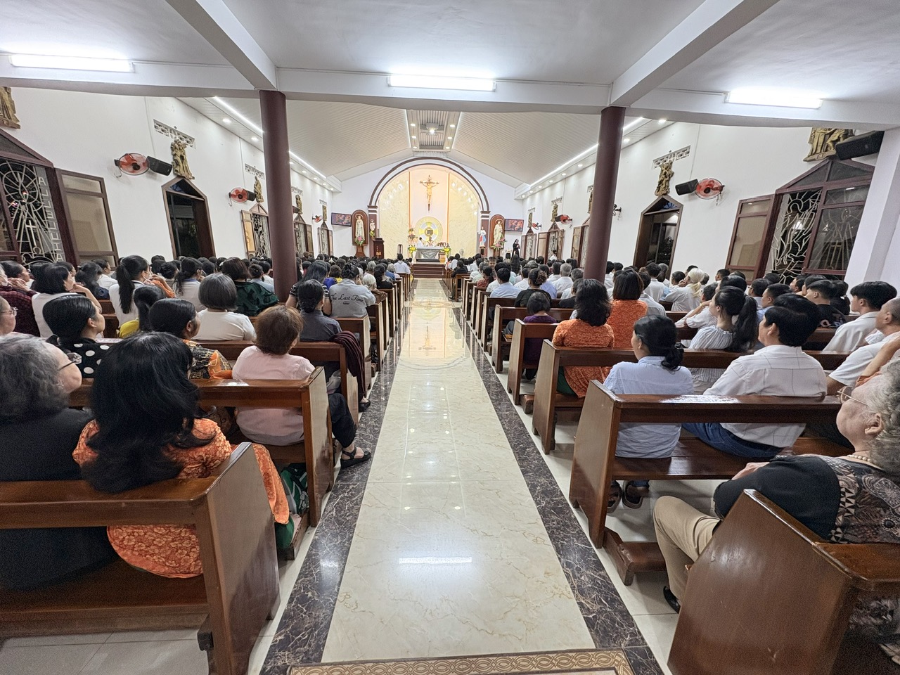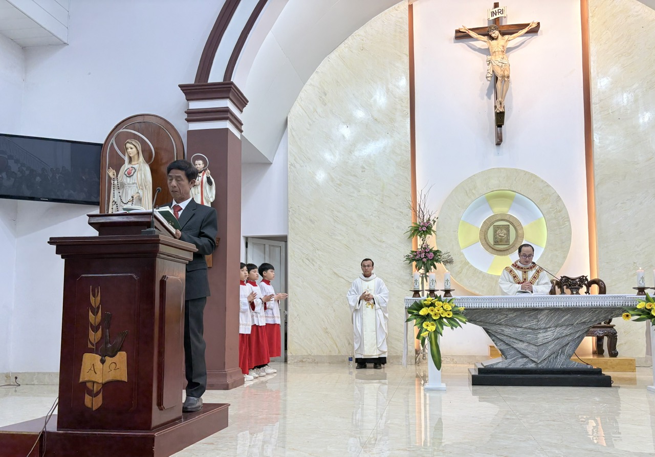 Thánh lễ được cử hành lúc 18g00 tại thánh đường giáo xứ, do Cha Quản xứ Tôma Aquinô chủ tế, đồng tế với Cha phó Antôn, cùng sự tham dự đông đảo của cộng đoàn dân Chúa.