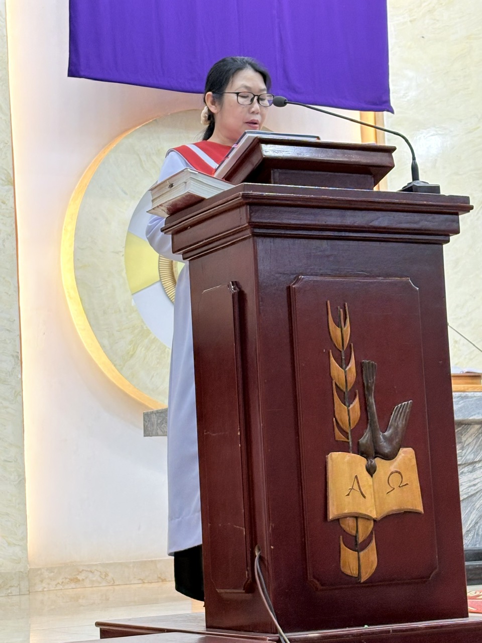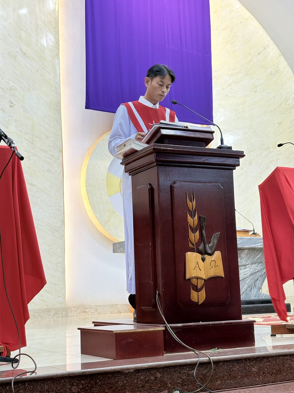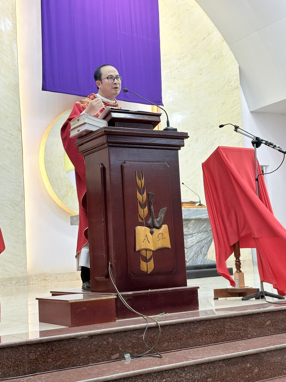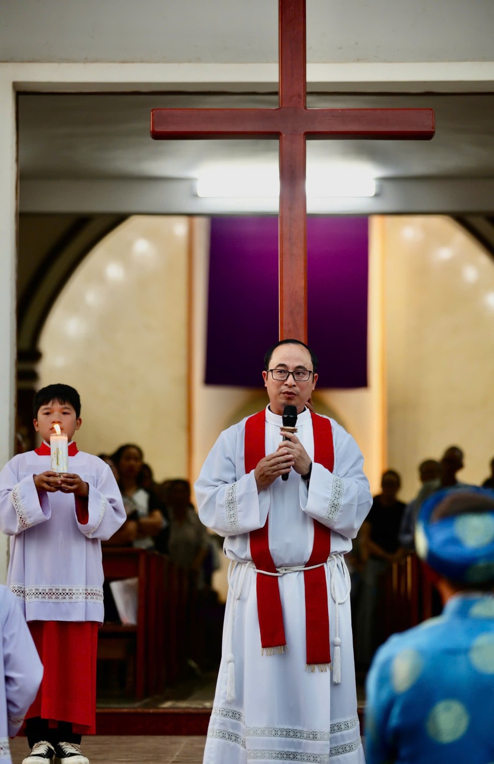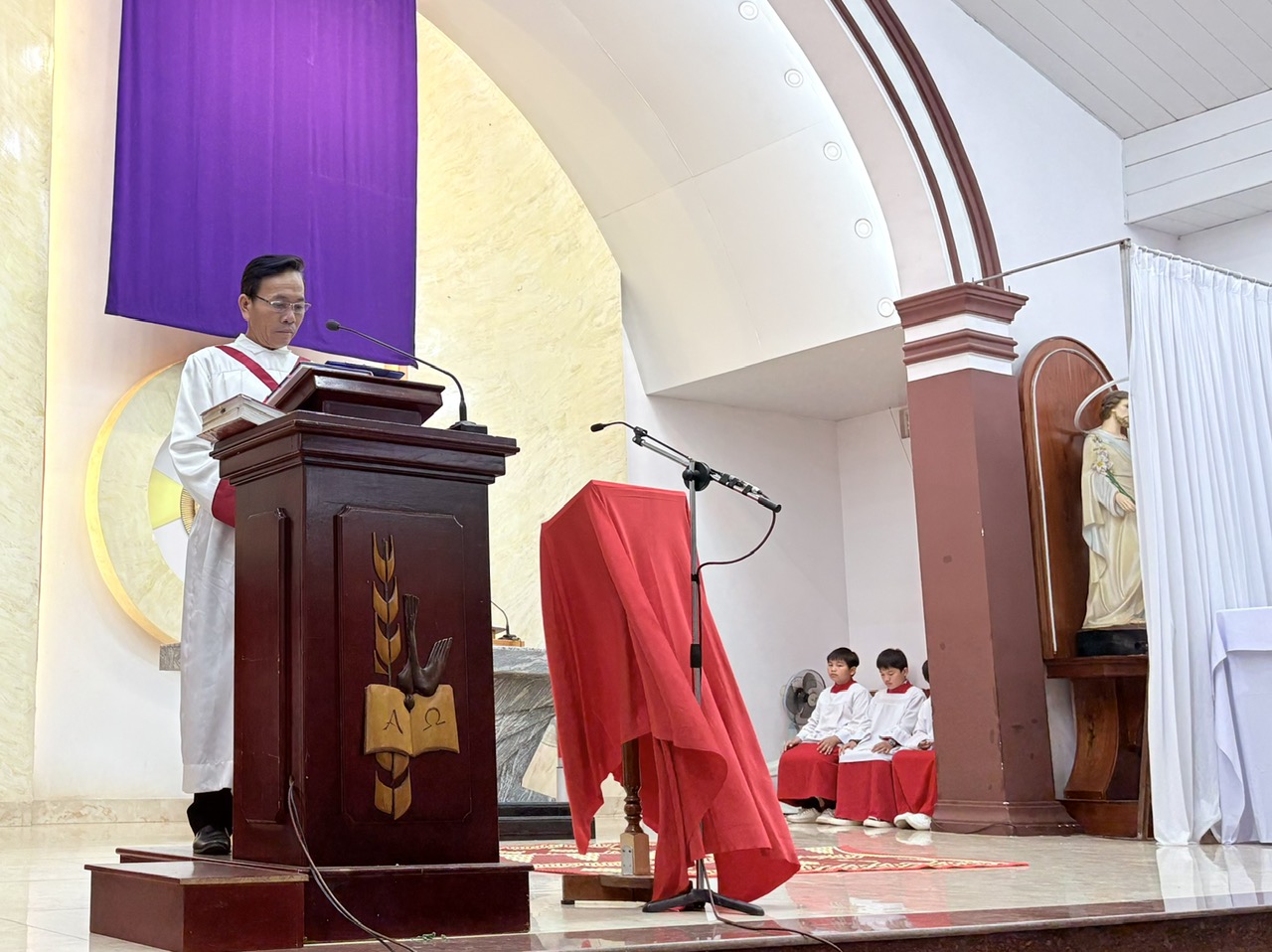 Trong phần Phụng vụ Lời Chúa, cộng đoàn sốt sắng lắng nghe trình thuật cuộc Thương Khó, như được sống lại từng giây phút cuối cùng của Chúa Giêsu trên hành trình cứu độ. Qua phần chia sẻ, Cha Quản xứ Tôma Aquinô đã gợi lại hình ảnh thánh Phêrô trong đêm Thầy chịu nạn. Dù đã theo Chúa suốt ba năm và được dạy dỗ nhiều điều, Phêrô vẫn chưa thể hiểu trọn vẹn con người và con đường của Thầy; ông từng nghĩ mình đủ mạnh mẽ để bảo vệ Thầy, nhưng rồi lại chối Thầy ba lần.