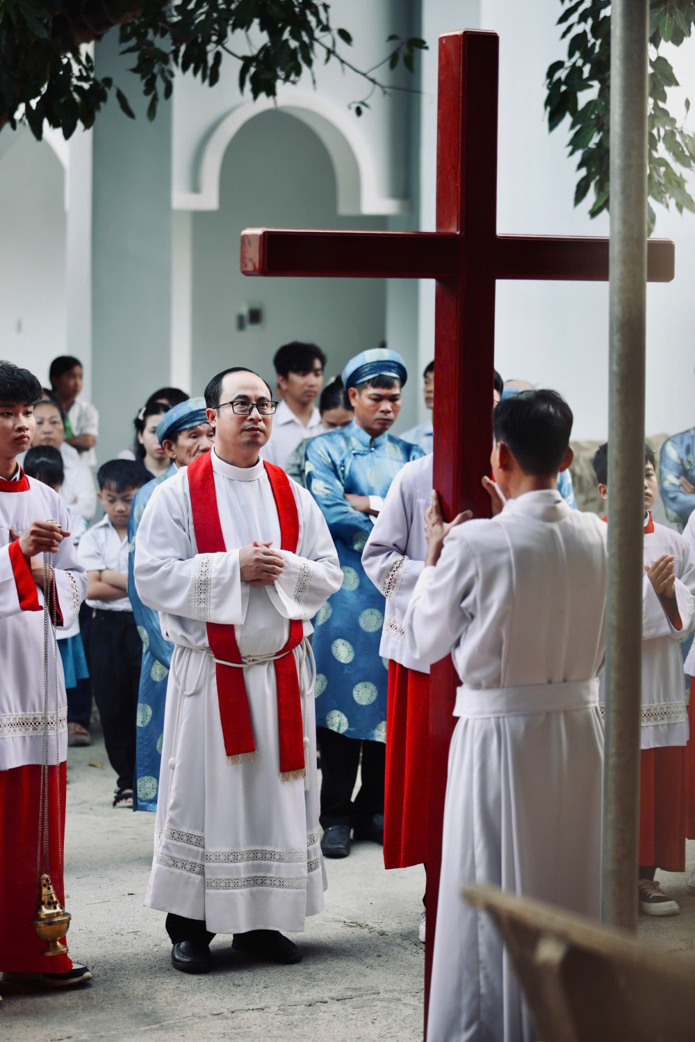 Ngay từ những bước chân đầu tiên của cuộc rước Đàng Thánh Giá, sự thinh lặng đã bao trùm toàn thể cộng đoàn. Từng chặng dừng chân không chỉ là những điểm dừng của hành trình, mà còn là những khoảnh khắc lắng đọng, giúp mỗi người chiêm ngắm sâu xa hơn tình yêu tự hiến của Chúa. Trong tiếng Lời Chúa, lời nguyện và những phút giây thinh lặng, cộng đoàn được mời gọi bước theo Chúa trên con đường thập giá – con đường của yêu thương, hy sinh và vâng phục.