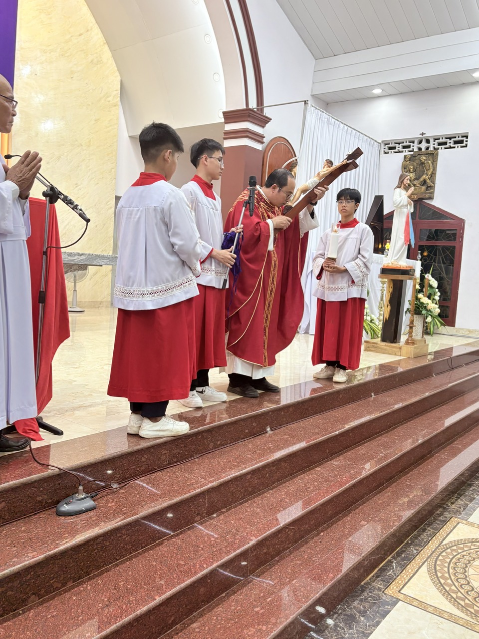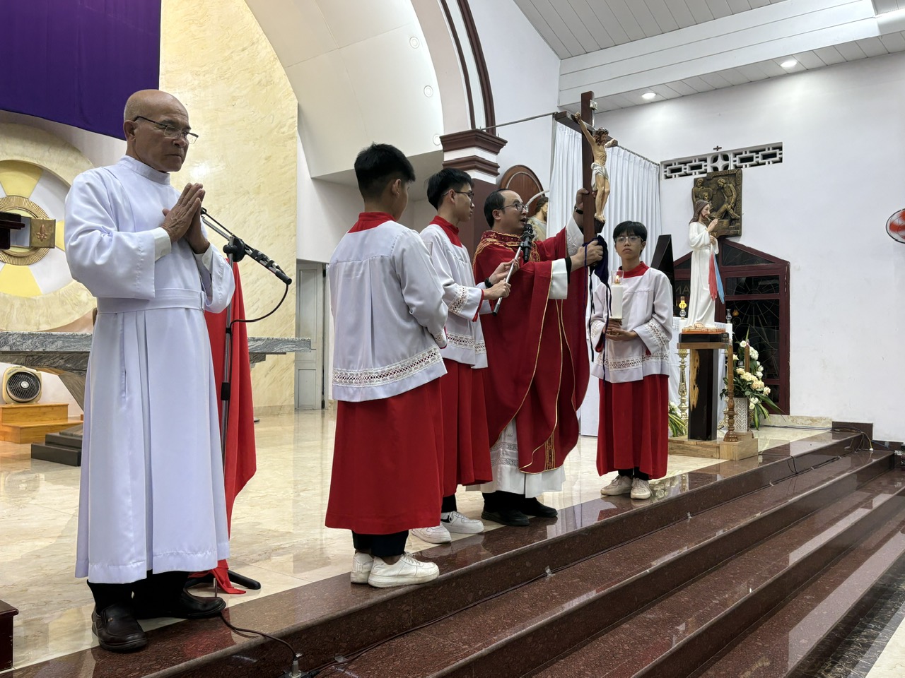 Trong bầu khí trầm lắng và linh thiêng của Thứ Sáu Tuần Thánh, chiều nay cộng đoàn dân Chúa đã sốt sắng quy tụ để tham dự nghi thức Đi Đàng Thánh Giá và Phụng vụ Lời Chúa, tưởng niệm cuộc khổ nạn và cái chết của Đức Giêsu Kitô trên thập giá.