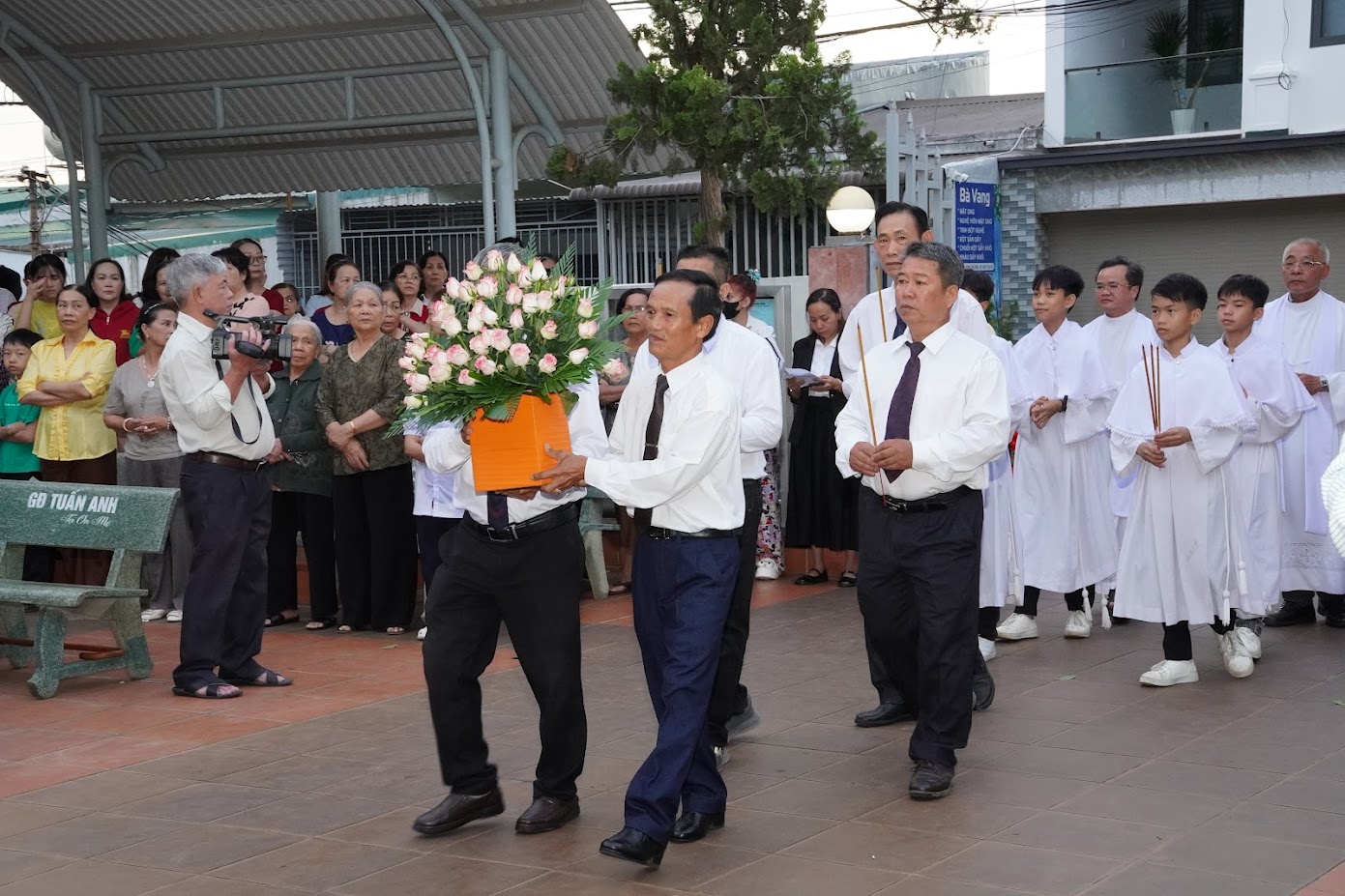 Khởi đầu, Cha Quản xứ Phêrô Nguyễn Minh Hiển, Cha Phêrô Hoàng Mạnh Hùng -người con của Giáo xứ, mục vụ tại Úc châu, nay về thăm quê hương; cùng với Quý chức HĐGX dâng hoa, niệm hương kính Mẹ.