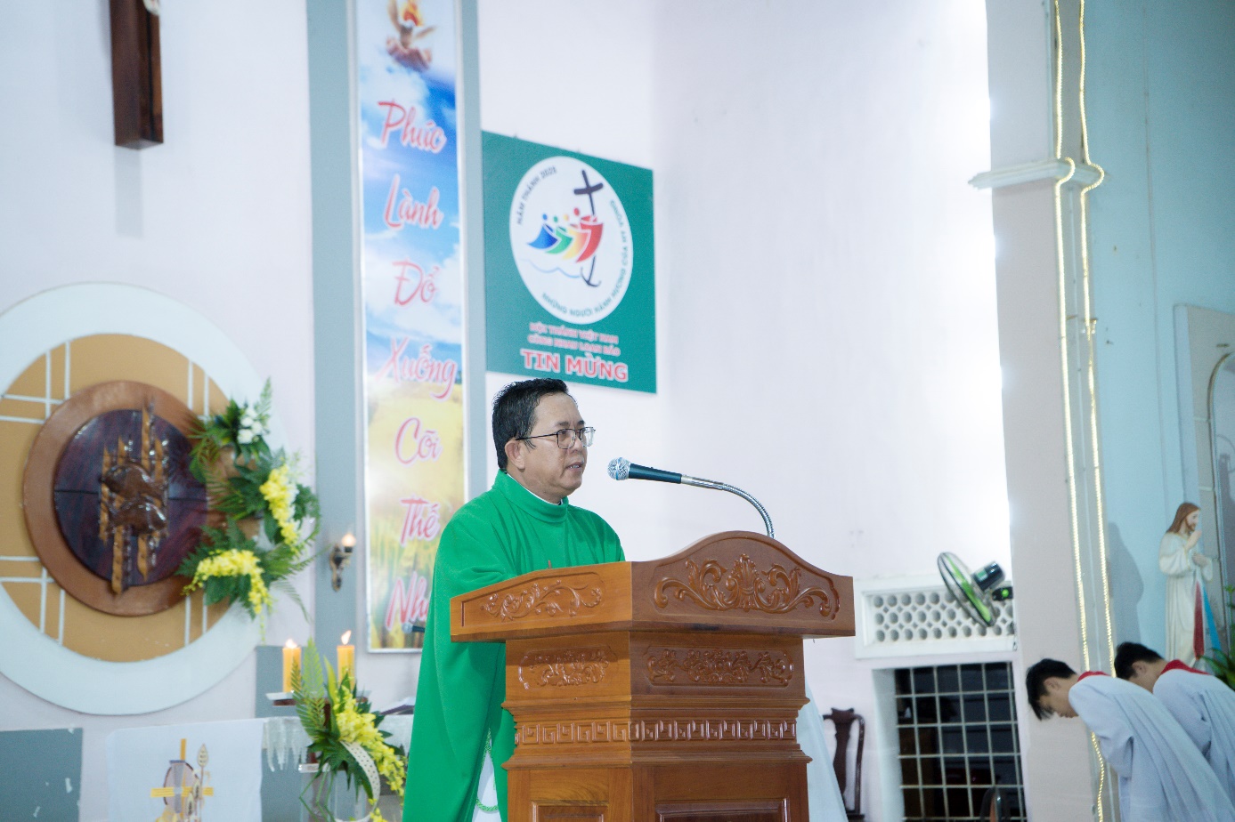 Trong phần chia sẻ Lời Chúa, Cha chủ sự mời gọi cộng đoàn hãy sống tâm tình tạ ơn trong từng ngày sống, như người Samaria trong bài Tin Mừng, biết nhận ra và đáp lại hồng ân của Thiên Chúa bằng một con tim biết ơn và đời sống phục vụ chân thành.