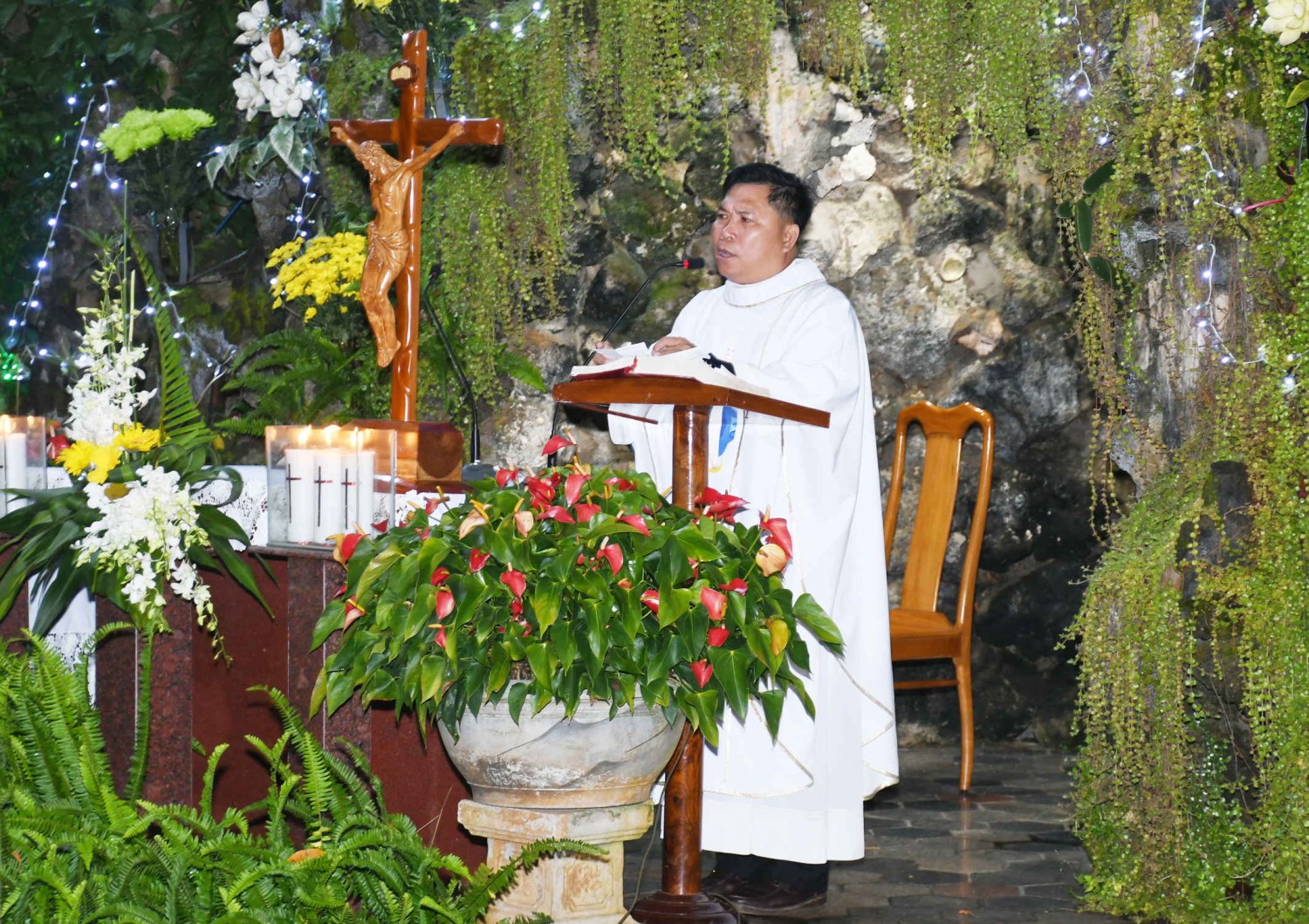 Khai mở đầu Thánh lễ, Cha Quản xứ Gioan Baotixita bày tỏ lòng tri ân và đánh giá cao tinh thần phục vụ âm thầm của Ban Cây cảnh, những người đã hy sinh công sức, tận tụy “chui gốc cây, chui bụi rậm” để giữ cho khuôn viên Giáo xứ luôn xanh tươi, thoáng mát và đẹp đẽ. Ngài chúc mừng ngày lễ Bổn mạng của Ban Cây cảnh, đồng thời mời gọi cộng đoàn cầu nguyện cho quý thành viên được nhiều ơn lành, bình an để tiếp tục phục vụ Giáo xứ trong niềm vui và khiêm hạ. Cha cũng xin cộng đoàn hiệp ý cầu nguyện cho Cộng đoàn LCTX và Nhóm U60 nhân dịp mừng Bổn mạng hôm nay.