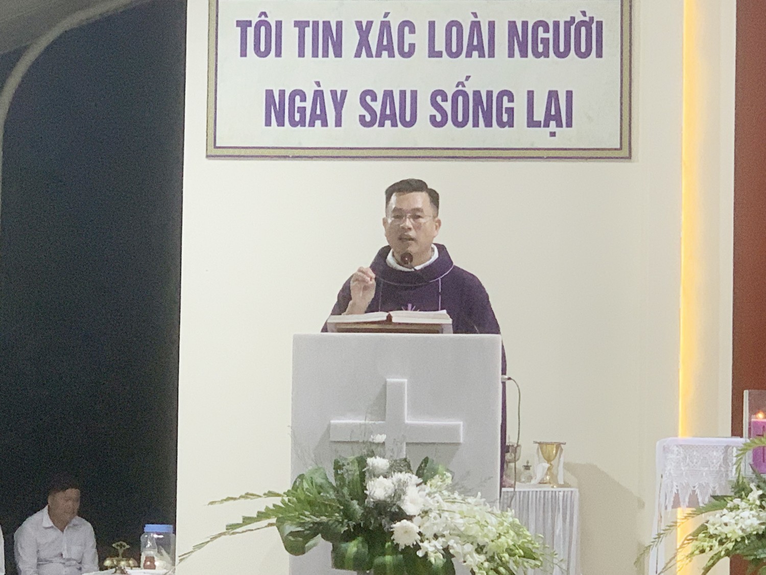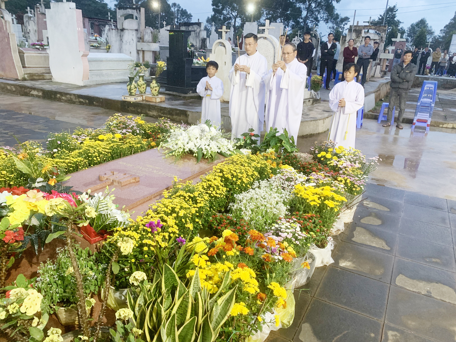 “Hôm nay chúng ta thật diễm phúc được hiện diện nơi đây, bên những nấm mộ thân yêu, để cầu nguyện cho các ngài. Nếu chúng ta biết từ bỏ những thói hư tật xấu của mình, chúng ta sẽ được hạnh phúc trong Nước Trời cùng các Thánh trên trời. Xin tiếp tục cầu nguyện cho ông bà, cha mẹ, những người thân yêu đã ra đi trước chúng ta, để nhờ lời cầu nguyện và hy sinh của chúng ta, các ngài được thanh luyện và sớm hưởng phúc vinh quang.”