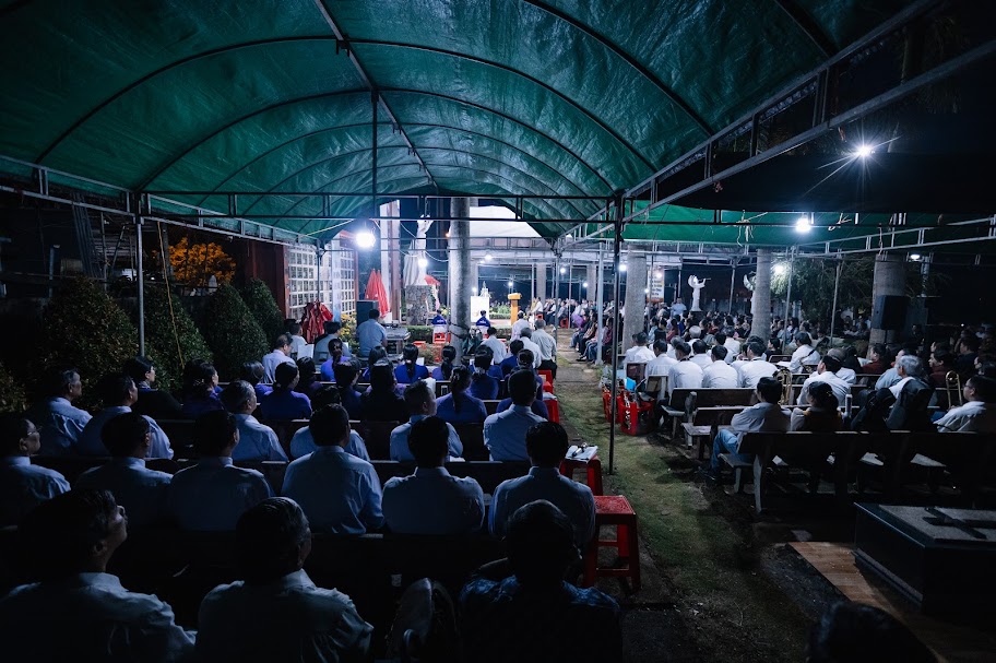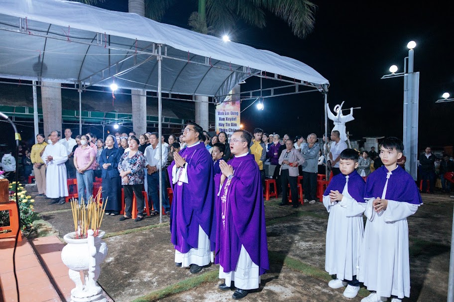 Thánh lễ kết thúc lúc trời đã tối, vào khoảng 19g.
