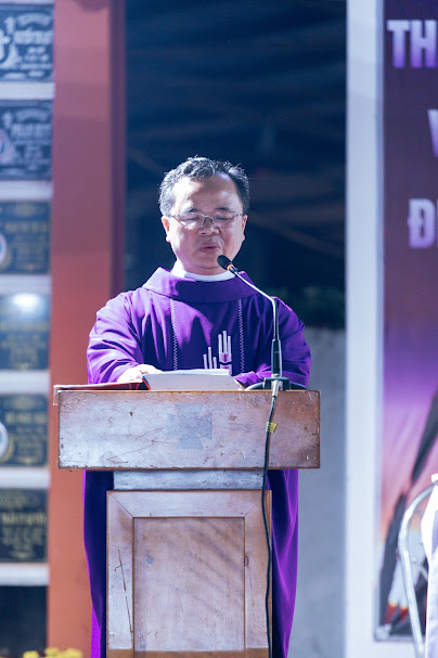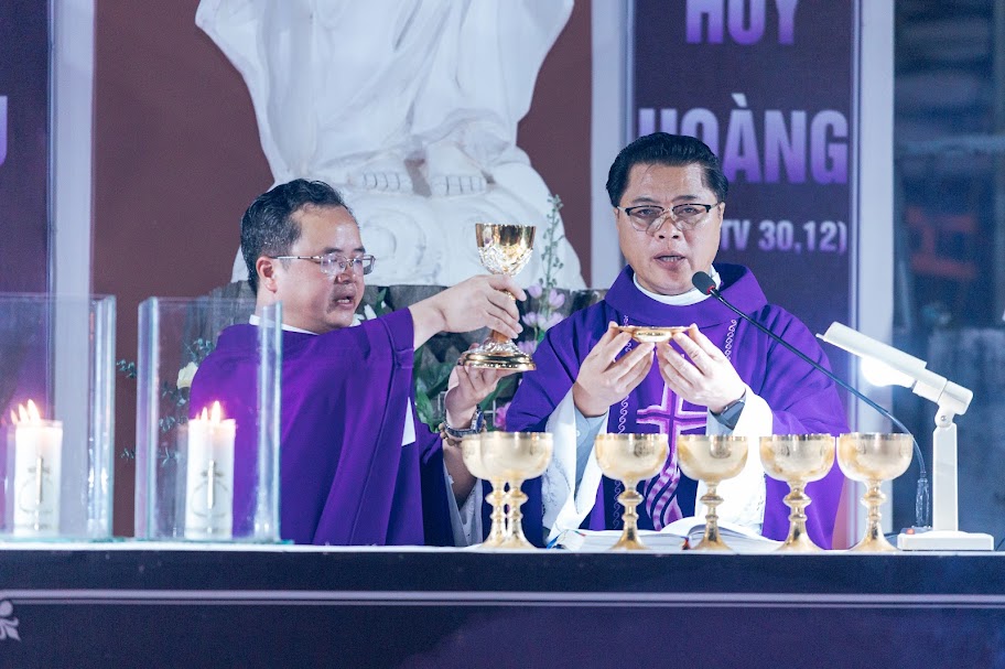 Đúng 18g00, Thánh lễ được cử hành trọng thể do Cha Giuse Bùi Văn Trường, người con của Giáo xứ – hiện là Cha Quản xứ Thuận Phúc – chủ tế.