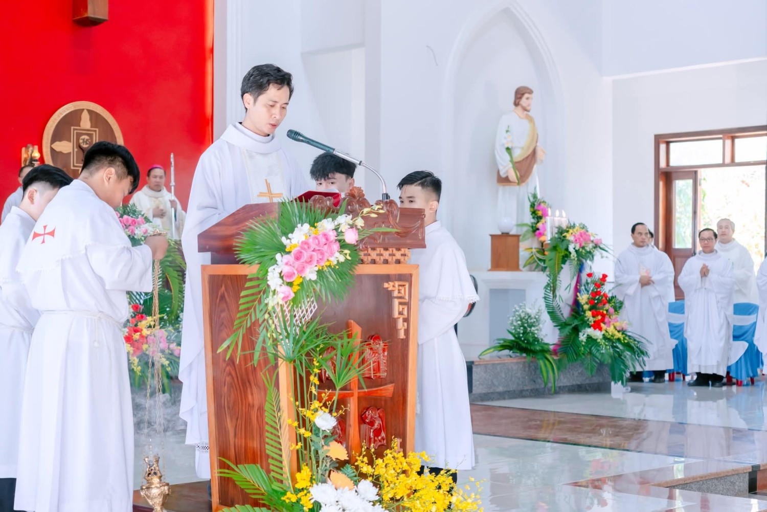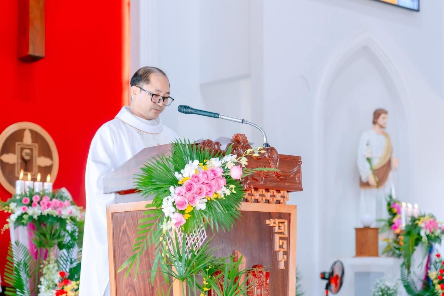 Cha Tân Quản xứ công bố Lời Chúa.