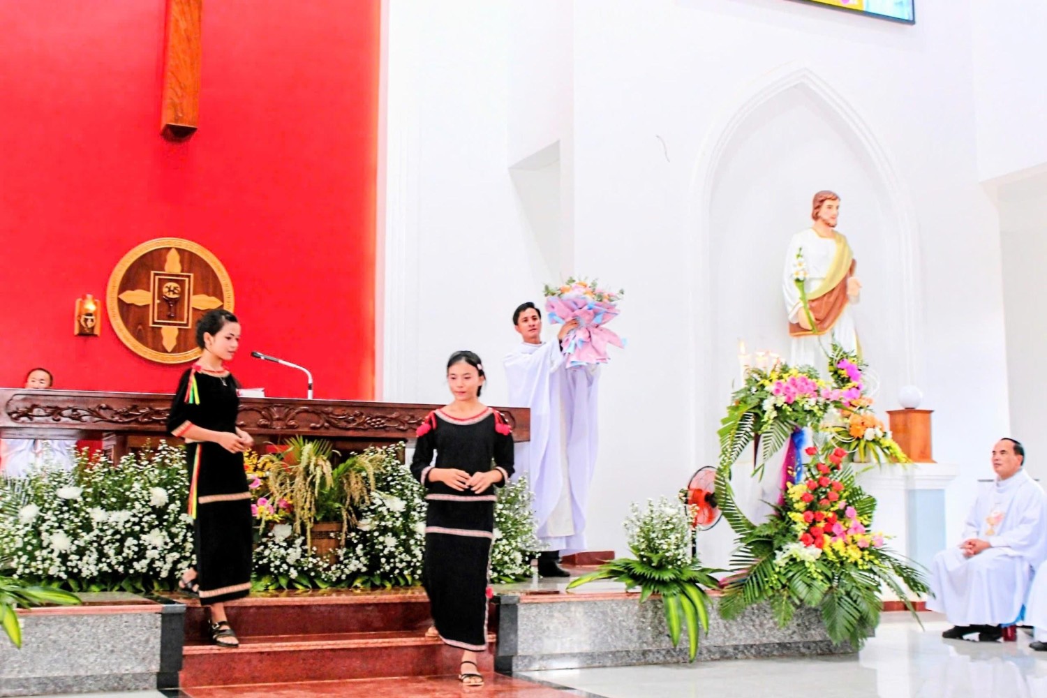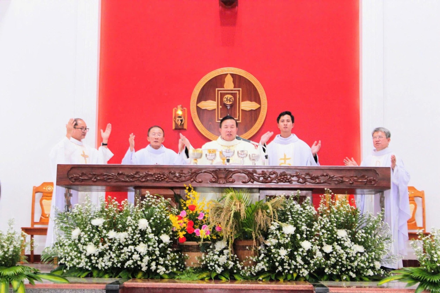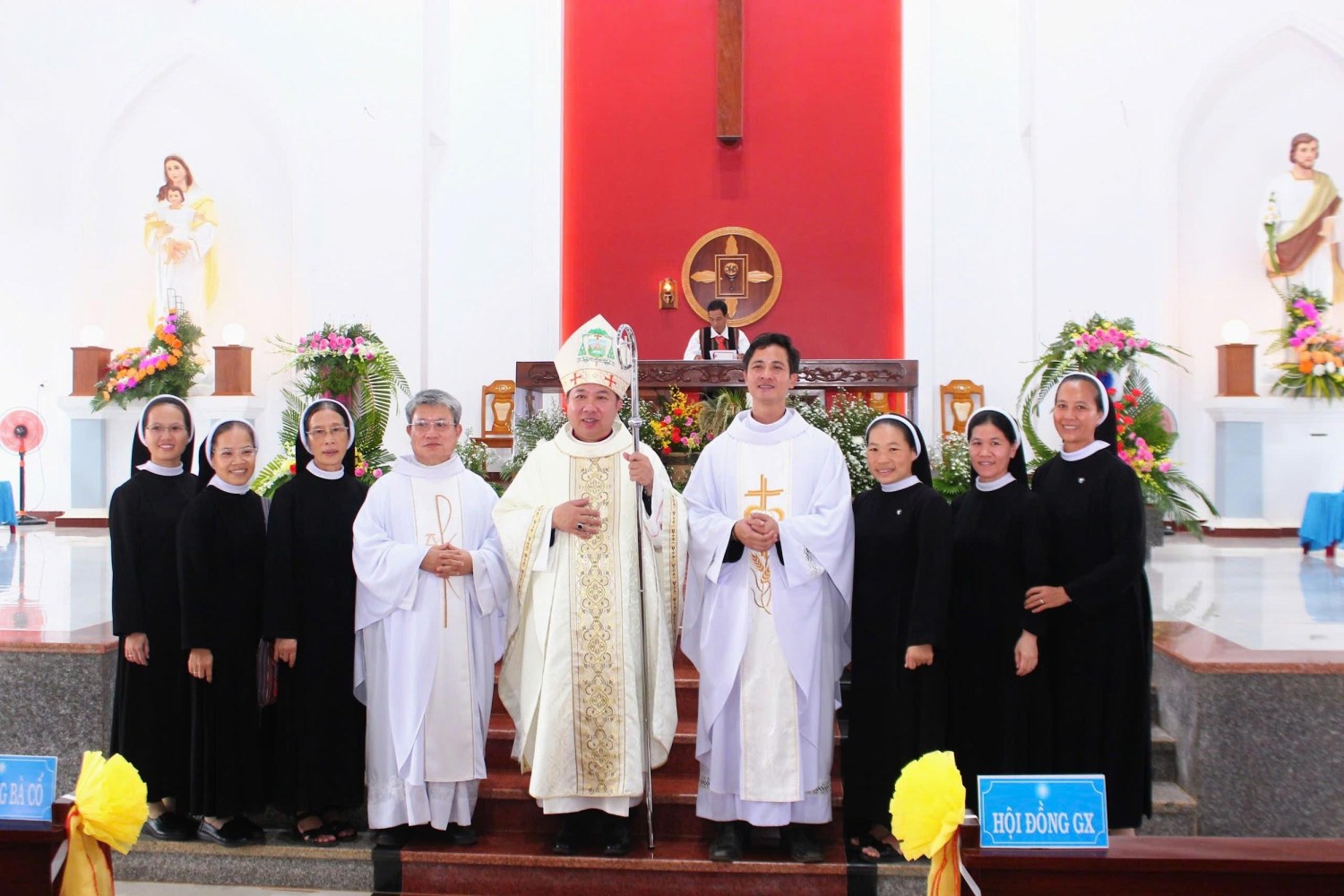 Thánh lễ hôm nay do Đức Cha G.B. Nguyễn Huy Bắc chủ tế, cùng đồng tế với ngài có Cha Tổng đại diện, quý Cha Quản hạt cùng quý Cha trong hai Giáo hạt và Giáo phận.