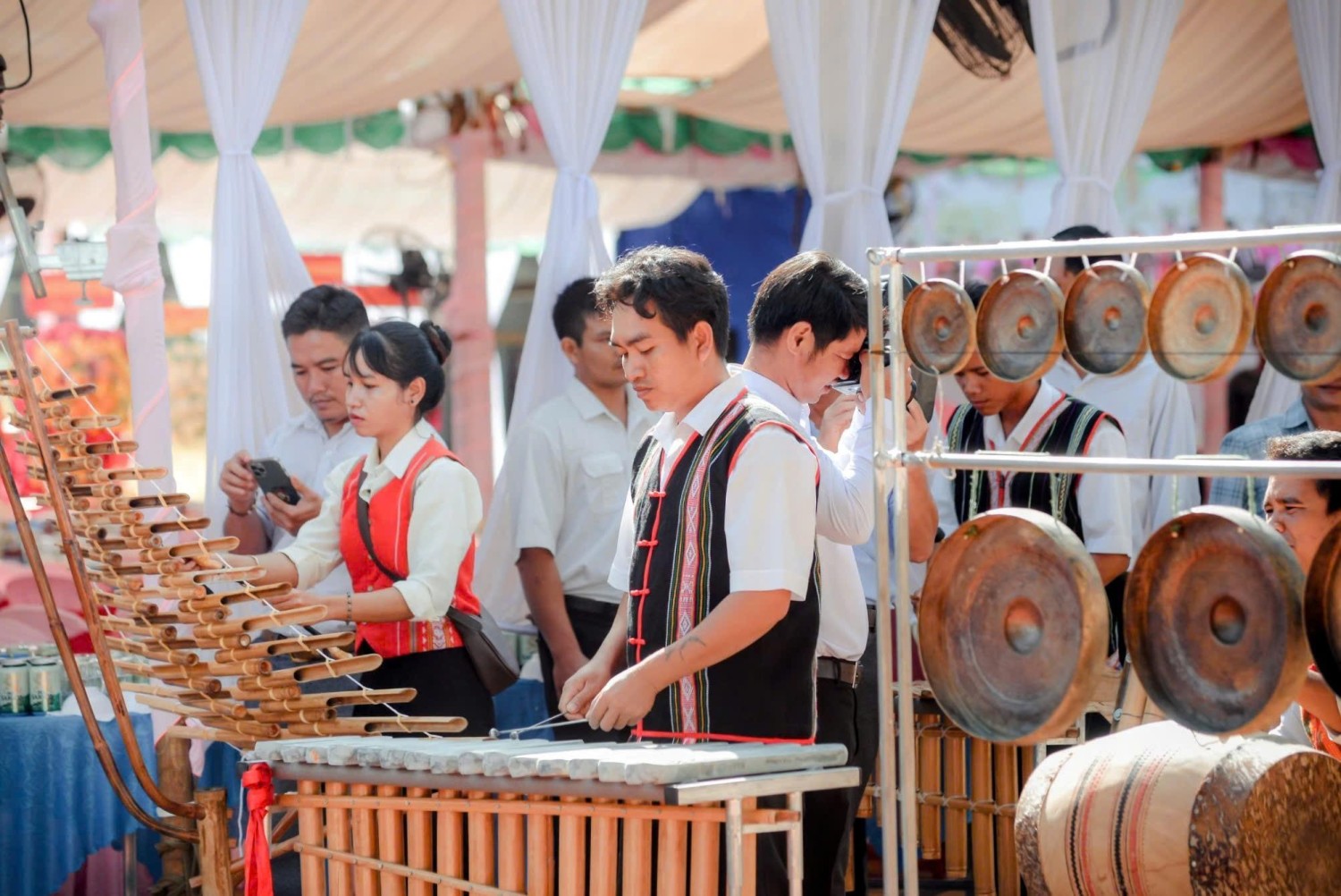 Tiếng nhạc rộn ràng, những nụ cười thân tình và ánh mắt chan chứa niềm tin yêu, đã làm nên bầu khí ấm áp của ngày trọng đại.