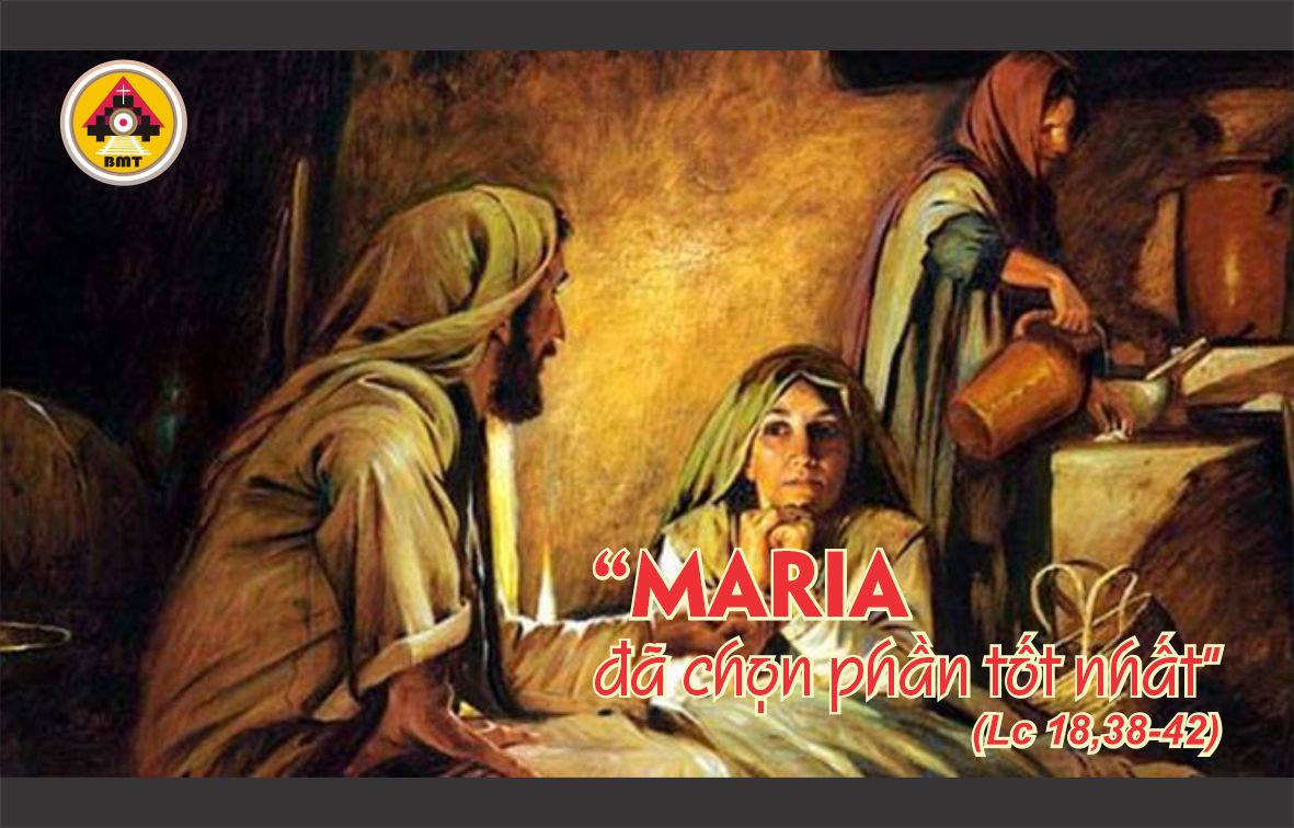 1. Hai chị em Mác-ta và Ma-ri-a đón tiếp Chúa Giê-su tại làng Bê-ta-ni-a, nơi mà Chúa Giê-su đã quen biết hai chị em. Lúc Chúa tới nhà, Mác-ta lo lắng chuẩn bị bữa ăn trong lúc Ma-ri-a ngồi yên bên Chúa để nghe lời Ngài. Câu trả lời của Đức Giê-su trước đề nghị của Mác-ta không có nghĩa là Ngài phủ nhận tất cả sự quan tâm lo lắng của Mác-ta. Nhưng Đức Giê-su muốn cho thấy một điều cao quý hơn là: lắng nghe Lời Chúa. Lo lắng cho Chúa là điều đáng quý, nhưng để hết tâm trí lắng nghe và thi hành Lời Chúa lại càng quý giá gấp bội.