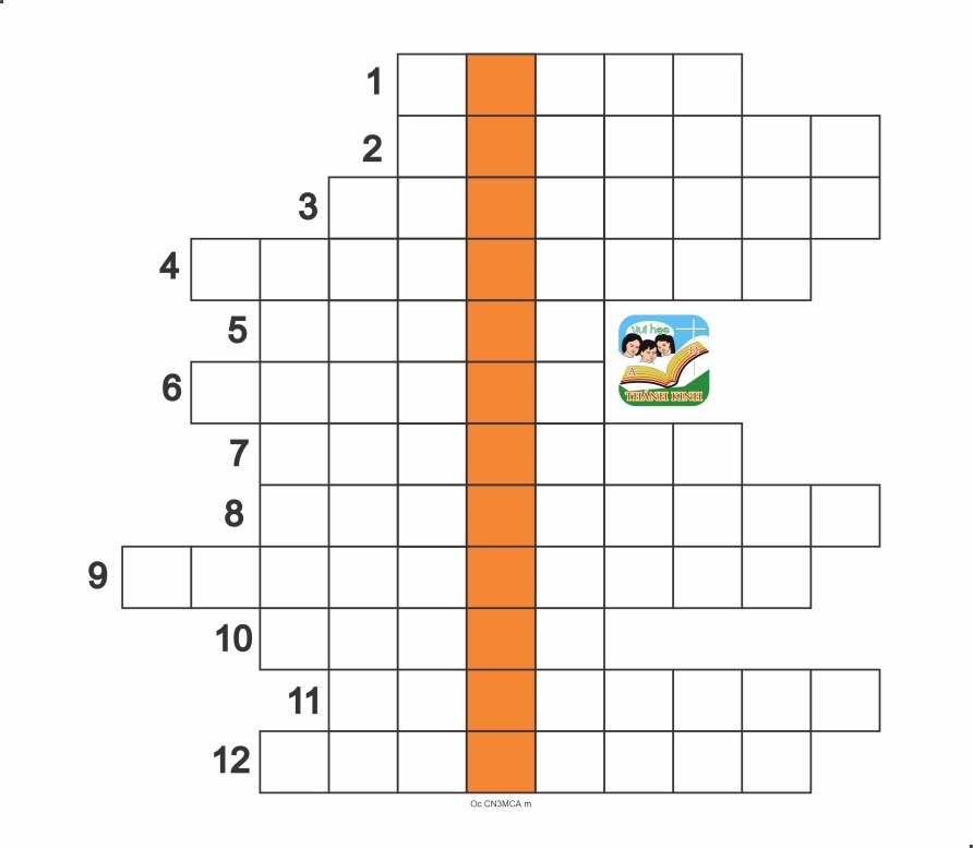 02. Người phụ nữ thưa ‘Tôi biết Đấng Mê-si-a, gọi là gì, sẽ đến?’(Ga 4,25) 03. Đức Giê-su xin người phụ nữ thành Sa-ma-ri điều gì? (Ga 4,7) 04. Người dân thành Sa-ma-ri đã tin nhận Đức Giê-su là ai? (Ga 4,42) 05. Tên làng quê, nơi Đức Giê-su gặp người phụ nữ bên bờ giếng là gì? (Ga 4,5) 06. Còn bốn tháng nữa mới đến … … … ?(Ga 4,35) 07. Sau khi gặp Đức Giêsu, dân thành Sa-ma-ri đã xin Người lưu lại với họ bao nhiêu ngày? (Ga 4,4) 08. Người phụ nữ Sa-ma-ri tin nhận Đức Giê-su là ai? (Ga 4,25) 09. Thành nơi người Do thái tôn thờ Thiên Chúa tên là gì? (Ga 4,20-21) 10. Đức Giê-su nói ‘Lương thực của Thầy là thi hành điều gì của Đấng đã sai Thầy? (Ga 4,34) 11. Nếu chị nhận ra ân huệ Thiên Chúa ban, và ai là người nói với chị: “Cho tôi chút nước uống”, thì hẳn chị đã xin, và người ấy đã ban cho chị nước gì? (Ga 4,10) 12. Ai đã gặp và xin nước uống của người phụ nữ bên bờ giếng của ông Gia-cóp? (Ga 4,7) Hàng dọc: Chủ đề của ô chữ này là gì?